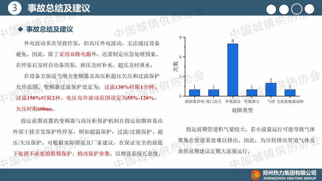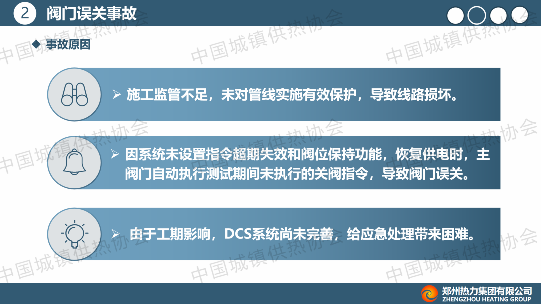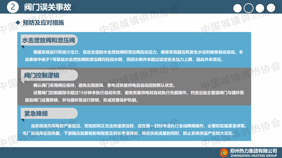 “长输与大温差供热”分论坛上,冯道广通过视频形式就此论文作了主题演讲,介绍了项目背景,并总结了阀门误关各类事故现象,分析事故原因,提出一系列具有针对性的预防和应对措施。他提出,供热系统运行管理中,需加强管线保护以防止施工破坏;加强系统监测与数据分析,对各类故障及时预警;建立健全应急预案,提高应急响应速度,保障系统安全。