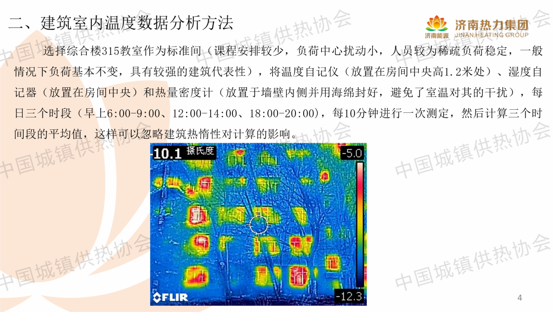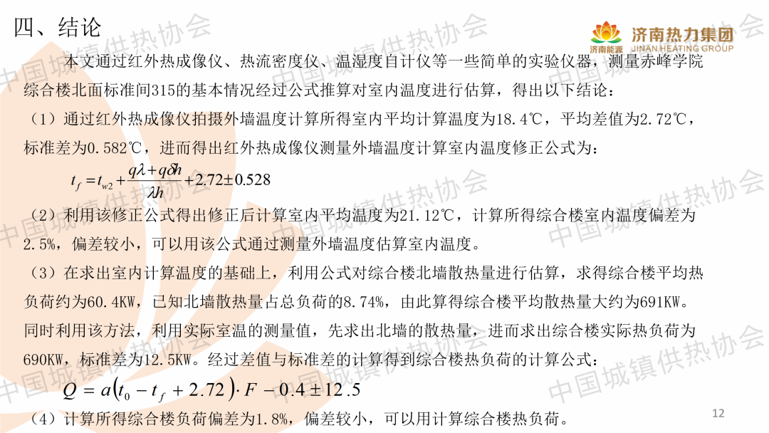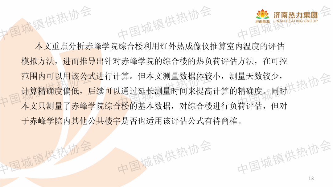 “室温调控与末端建筑节能”分论坛上,蔺德茹就此论文作了主题演讲,重点分析赤峰学院综合楼利用红外热成像仪推算室内温度的评估模拟方法,进而推导出针对赤峰学院的综合楼的热负荷评估方法,在可控范围内可以用该公式进行计算。