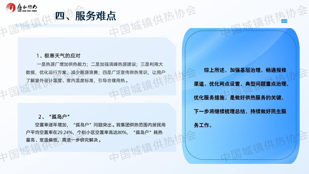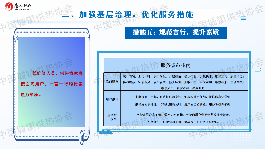 “客户服务与供热企业管理”分论坛上,陈兴旺就此论文作了主题演讲。他提出,加强基层治理,畅通报修渠道,优化网点设置,典型问题重点治理,优化服务措施,是做好供热服务的关键。