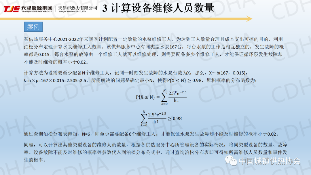 天津热力马艳良:基于泊松分布定理计算维修人员数量及报修电话概率