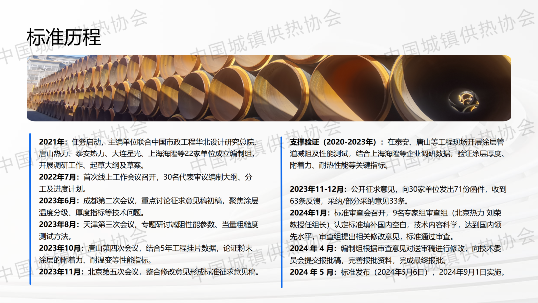 北京市建设工程质量第四检测所所长白冬军、北京市公用事业科学研究所科长冯文亮、经理杨雪飞对团体标准《供热管道内减阻涂层技术条件》(T/CDHA 18-2024)进行了解读。