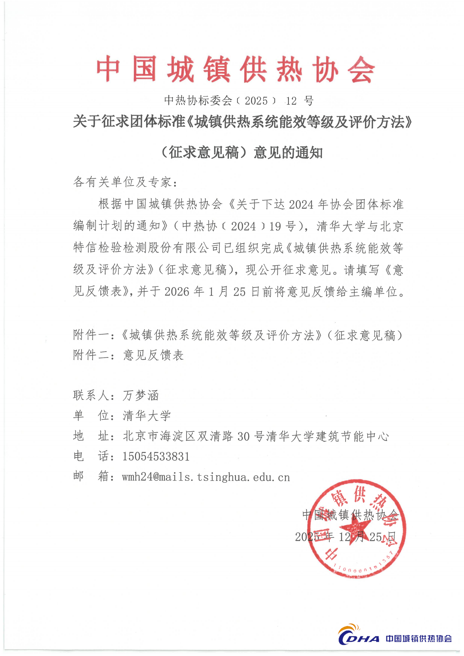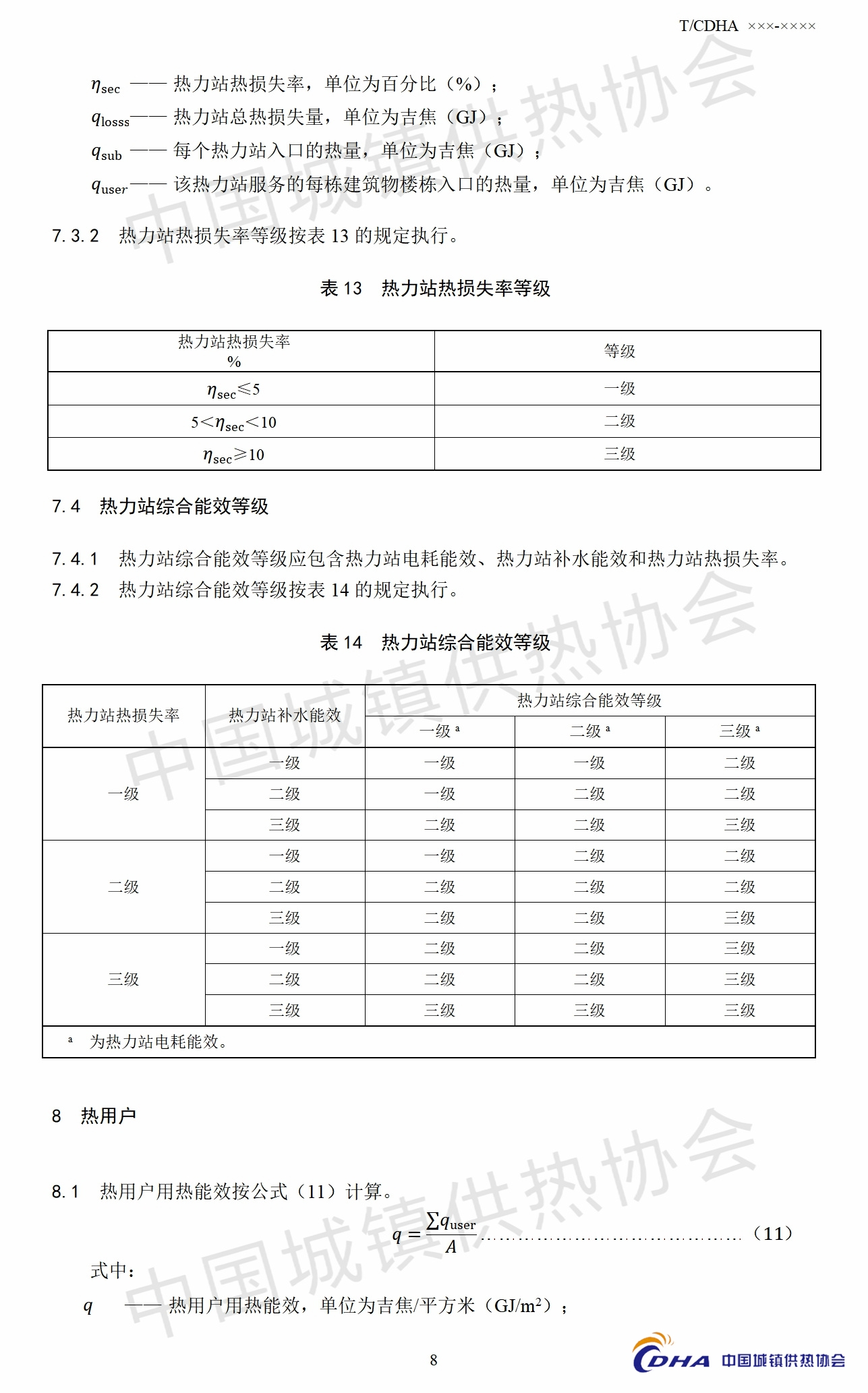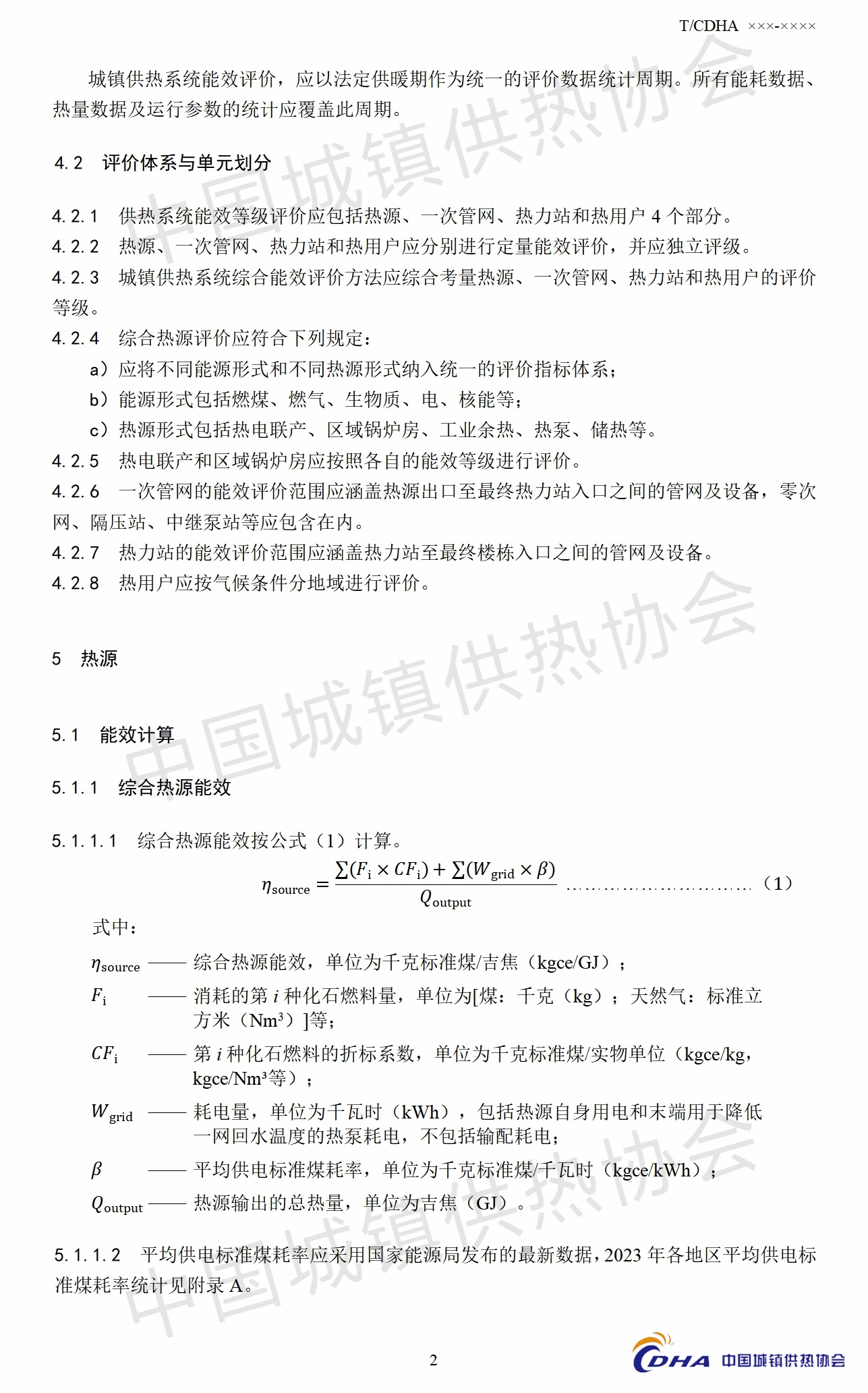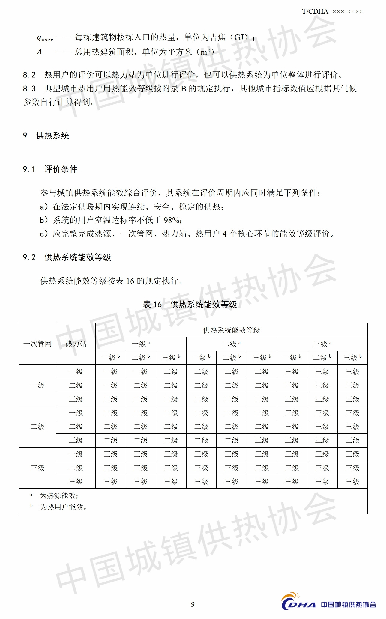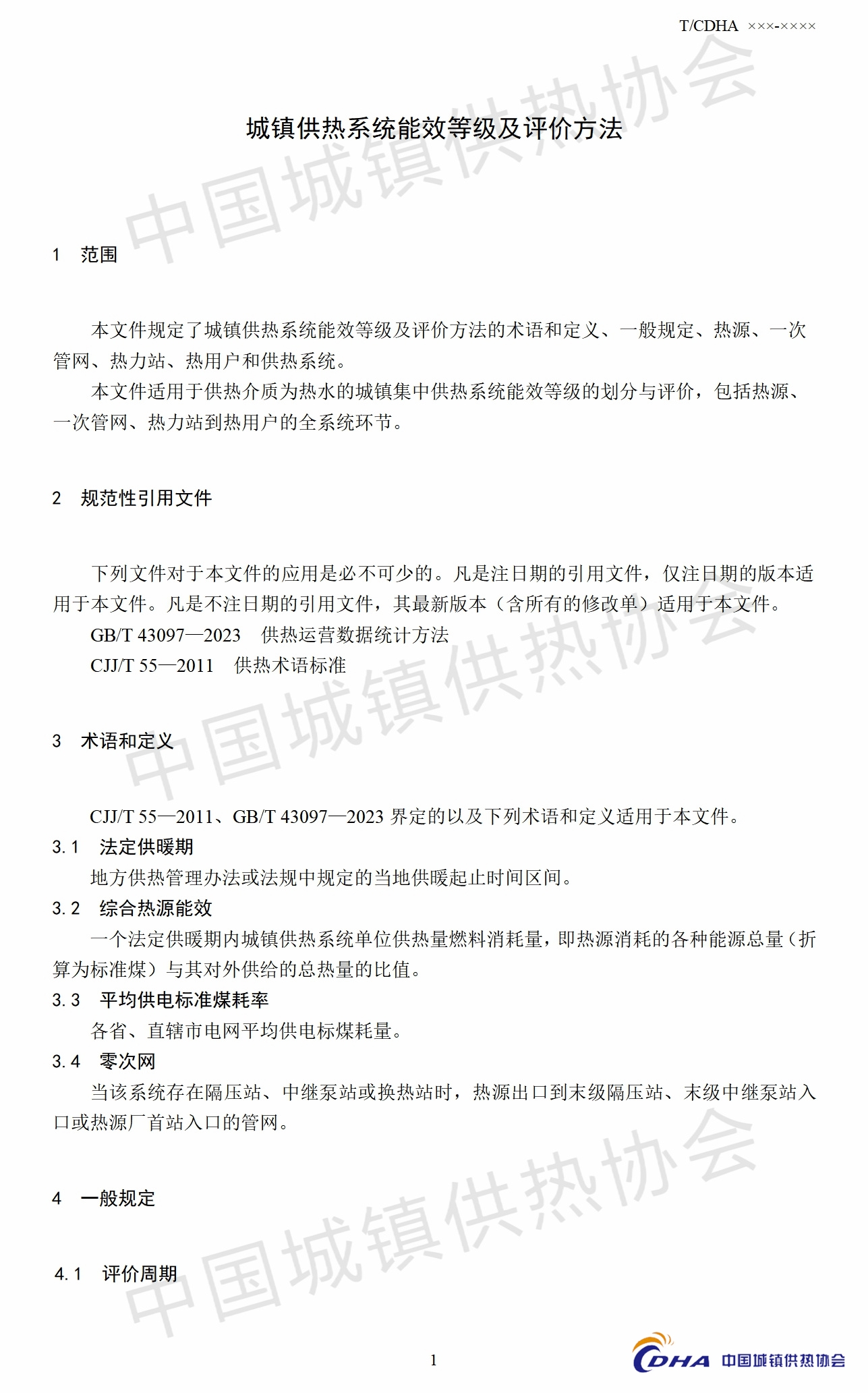 协会团体标准《城镇供热系统能效等级及评价方法》(征求意见稿)