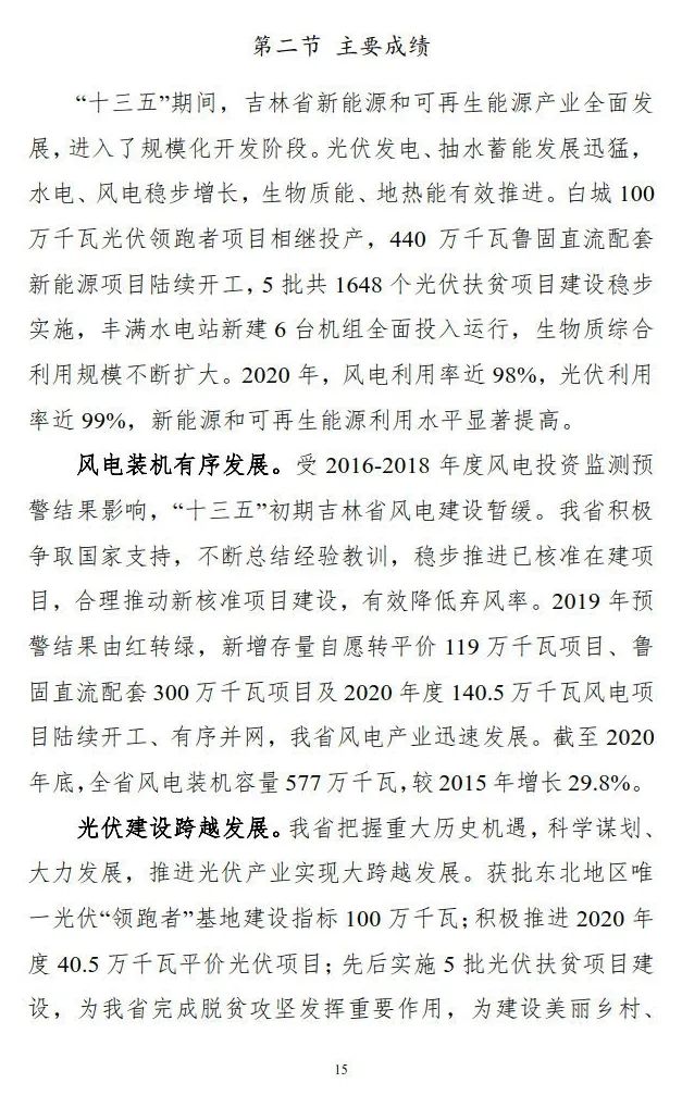《吉林省新能源和可再生能源发展“十四五”规划》的通知