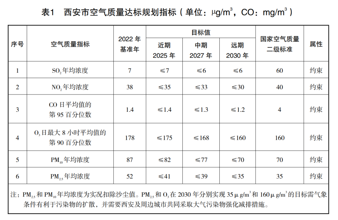 根据《陕西省大气污染治理专项行动方案(2023—2027年)》《西安市大气污染治理专项行动方案(2023—2027年)》和《城市大气环境质量限期达标规划编制技术指南》相关要求,结合西安市实际情况,分阶段制定空气质量目标: