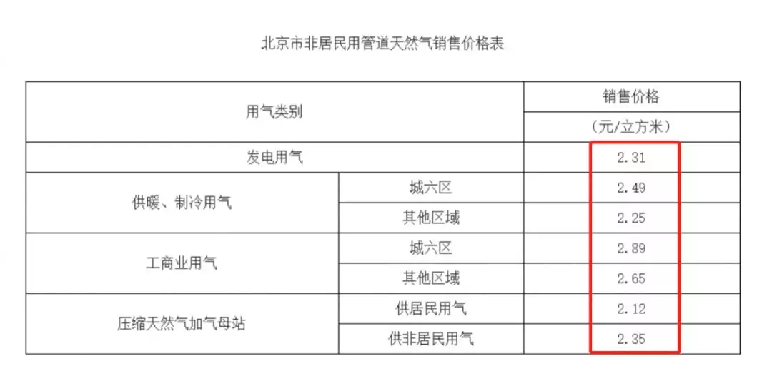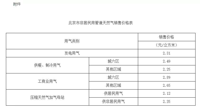 附件:北京市非居民用管道天然气销售价格表