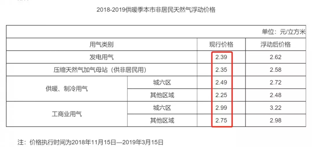 供暖季前价格来源:京发改[2018]2470号《关于2018-2019供暖季本市非居民天然气销售价格浮动问题的通知》
