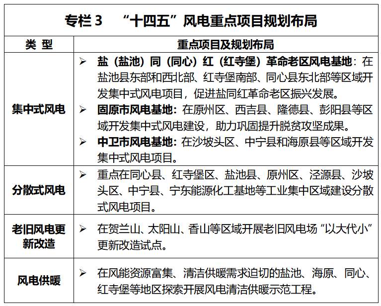 4.创新商业模式,探索发展风电清洁供暖。在盐池、海原、同心、红寺堡等风能资源富集和清洁取暖需求迫切地区,创新投融资和电力交易模式,因地制宜选用风电+蓄热式电锅炉或空气源热泵等技术路线,探索开展风电供暖示范工程,切实提高城乡清洁电力供应和清洁取暖比重。
