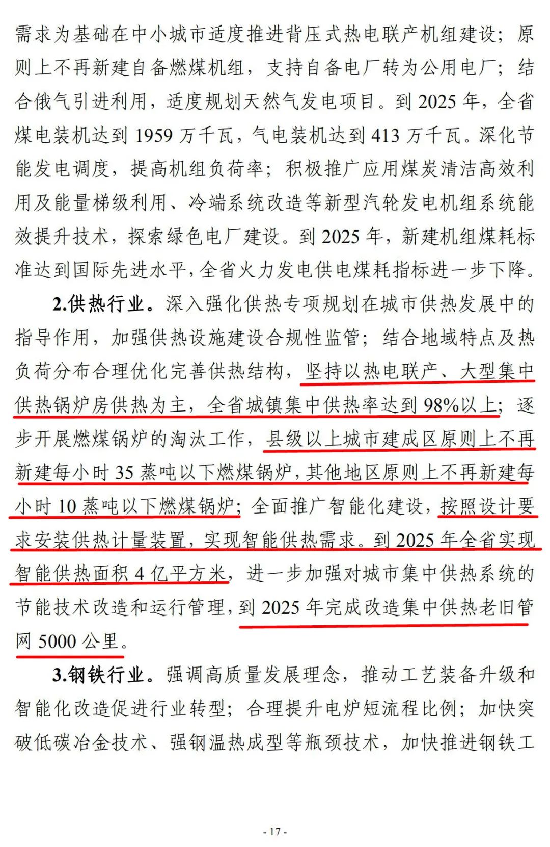 到2025年全省实现智能供热面积4亿平方米,进一步加强对城市集中供热系统的节能技术改造和运行管理,到2025年完成改造集中供热老旧管网5000公里。