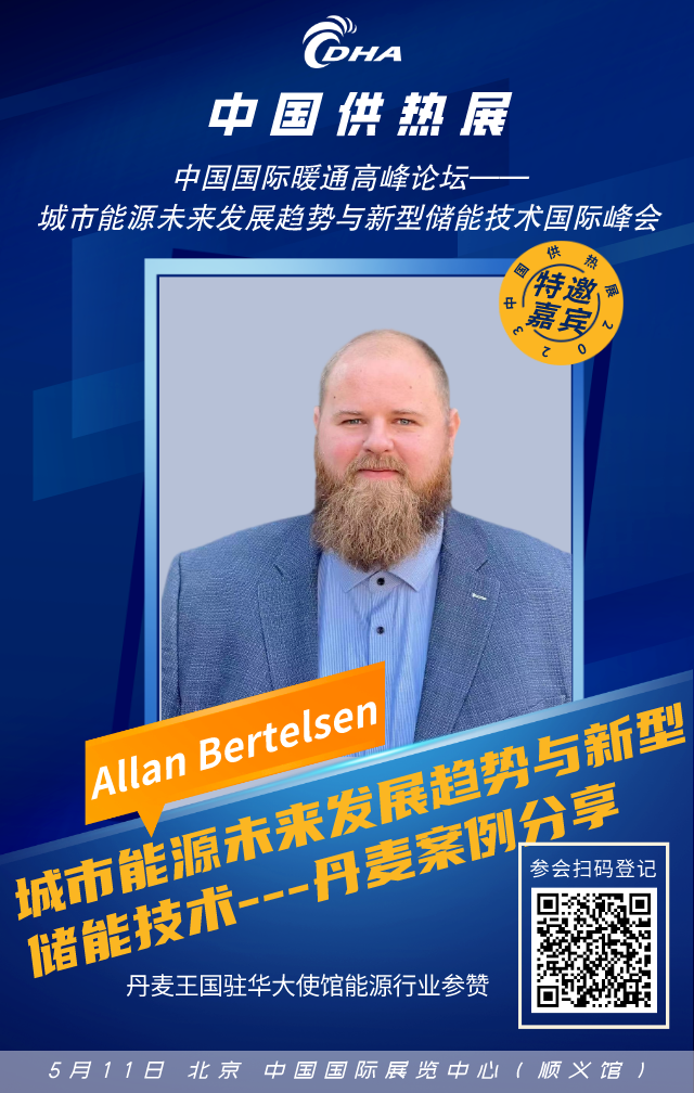 中国城镇供热协会特别邀请丹麦王国驻华大使馆能源行业参赞Allan Bertelsen(陈艾伦)作关于《城市能源未来发展趋势与新型储能技术——丹麦案例分享》的主题演讲。