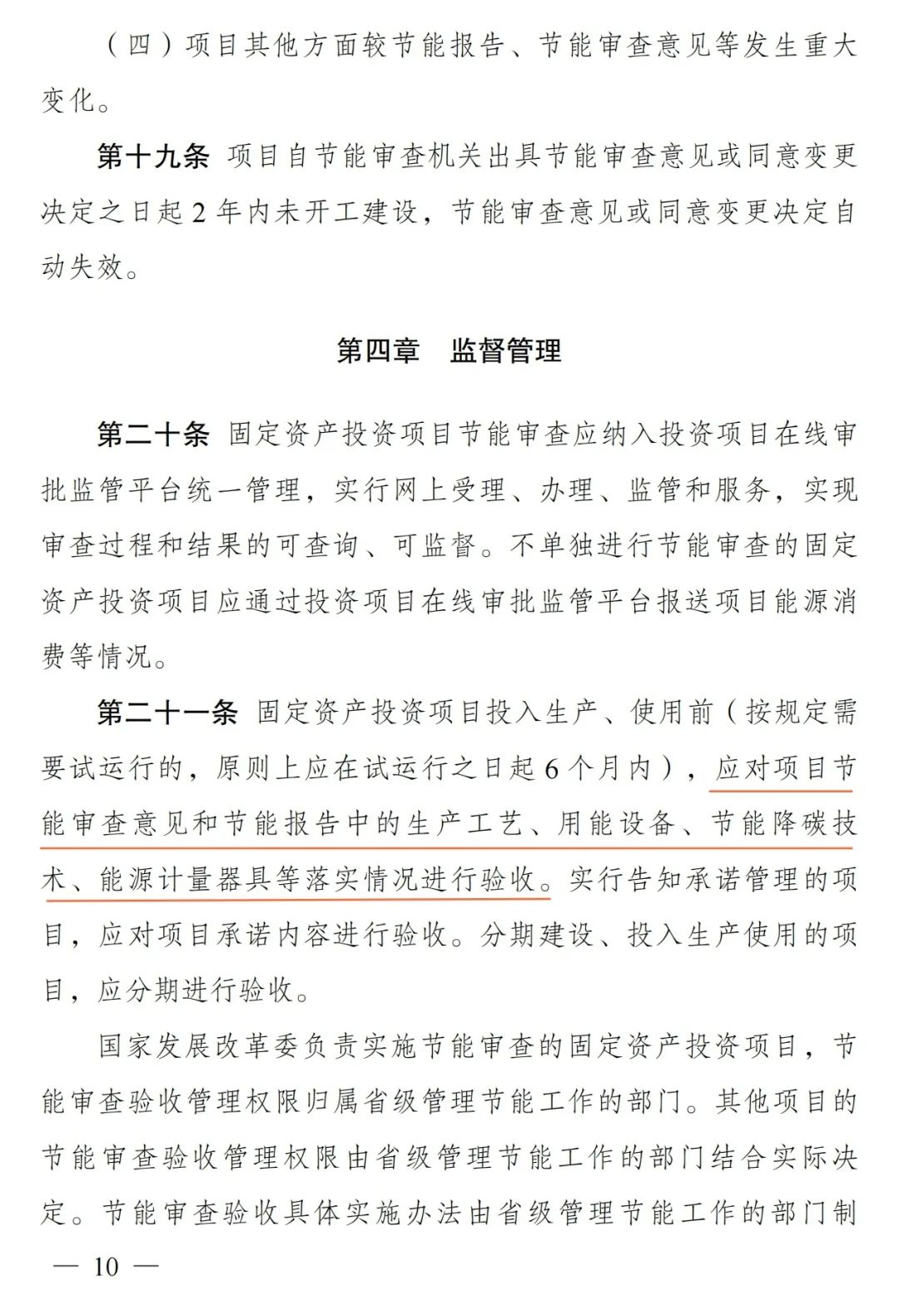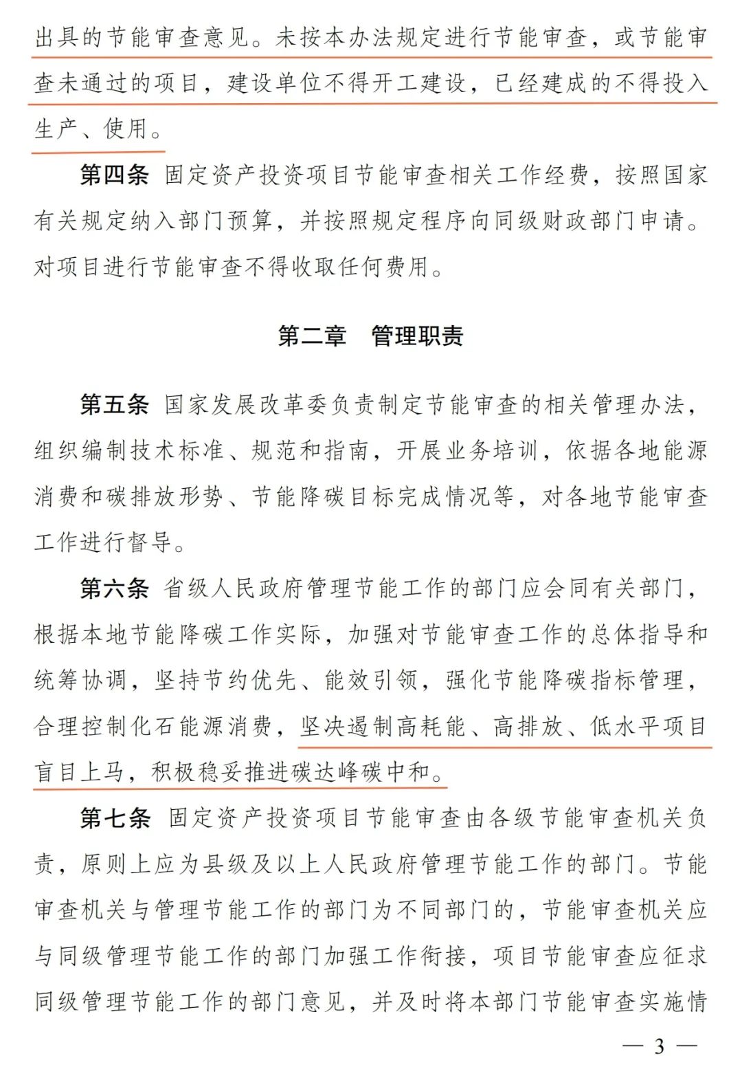 三是完善节能审查事中事后管理有关规定。要求管理节能工作的部门加强对节能审查实施情况的监督管理,明确项目发生重大变动、未落实节能审查意见等具体情形和处置方式,强化项目节能审查验收管理要求,完善法律责任相关规定。