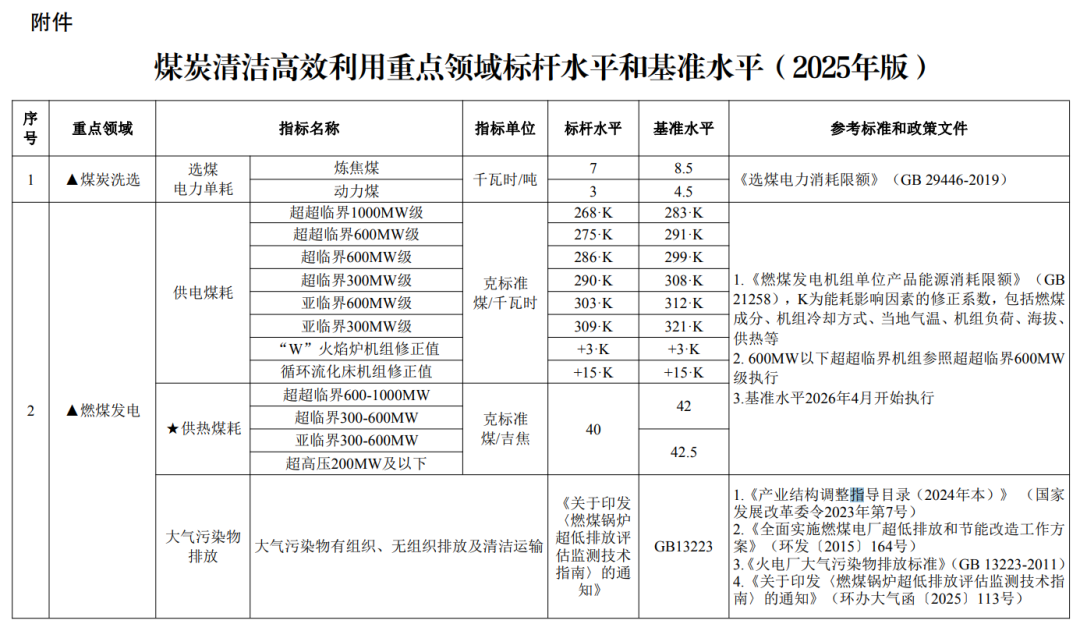 为贯彻落实党中央、国务院决策部署,推动煤炭产业由低端向高端、煤炭产品由初级燃料向高价值产品攀升,按照《国家发展改革委等部门关于加强煤炭清洁高效利用的意见》(发改运行〔2024〕1345号),经商有关方面,现发布《煤炭清洁高效利用重点领域标杆水平和基准水平(2025年版)》,并就有关事项通知如下。
