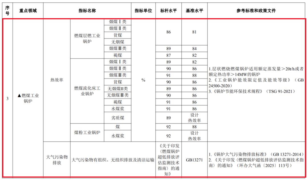 结合煤炭行业发展现状和潜力,在此前重点领域能效标杆水平和基准水平的基础上,将燃煤发电供热煤耗、煤制天然气等纳入范围。对标国内外煤炭清洁高效领域先进水平,以及国家、地方现行政策、标准中先进能效指标值和最严格污染物排放要求,完善煤炭清洁高效利用标杆水平。参考国家现行标准中的准入值或限定值,以及国家政策文件明确的相关指标,科学确定煤炭清洁高效利用的基准水平。煤炭清洁高效利用重点领域标杆水平和基准水平将视行业发展和标准制修订情况进行动态调整,强化标杆水平引领作用和基准水平约束作用。