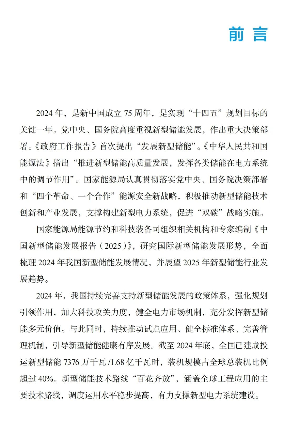 2025年7月31日,国家能源局发布《中国新型储能发展报告(2025)》。报告显示,截至2024年底,全国已建成投运新型储能达7376万千瓦/1.68亿千瓦时,装机规模占全球总装机比例超过40%。新型储能技术路线“百花齐放”,涵盖全球工程应用的主要技术路线,调度运用水平稳步提高,有力支撑新型电力系统建设。