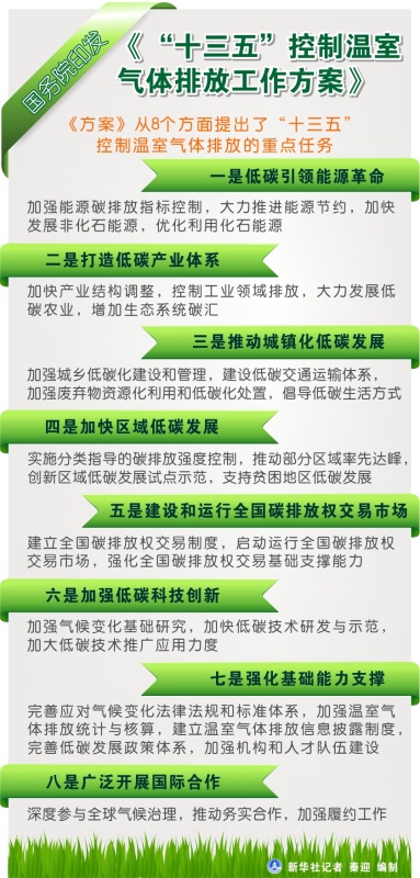 国务院印发《“十三五”控制温室气体排放工作方案》
