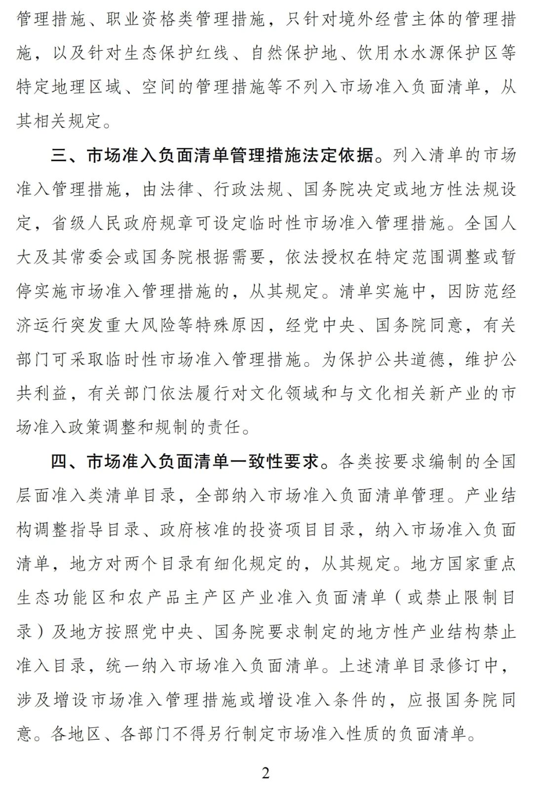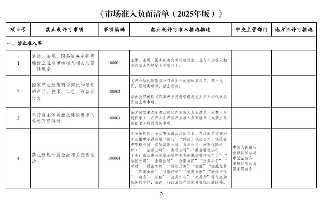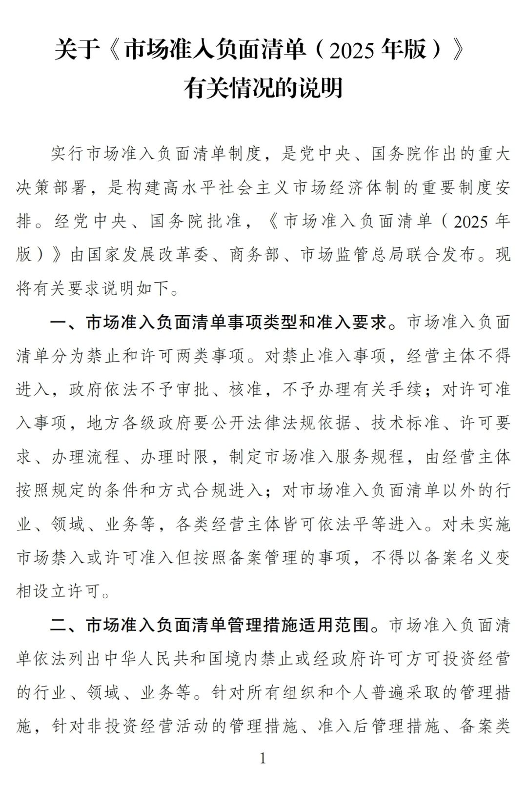 《市场准入负面清单(2025年版)》已经党中央、国务院批准,自即日起印发实施,请结合实际认真贯彻落实。2022年3月12日发布的《市场准入负面清单(2022年版)》(发改体改规〔2022〕397号)同时废止。
