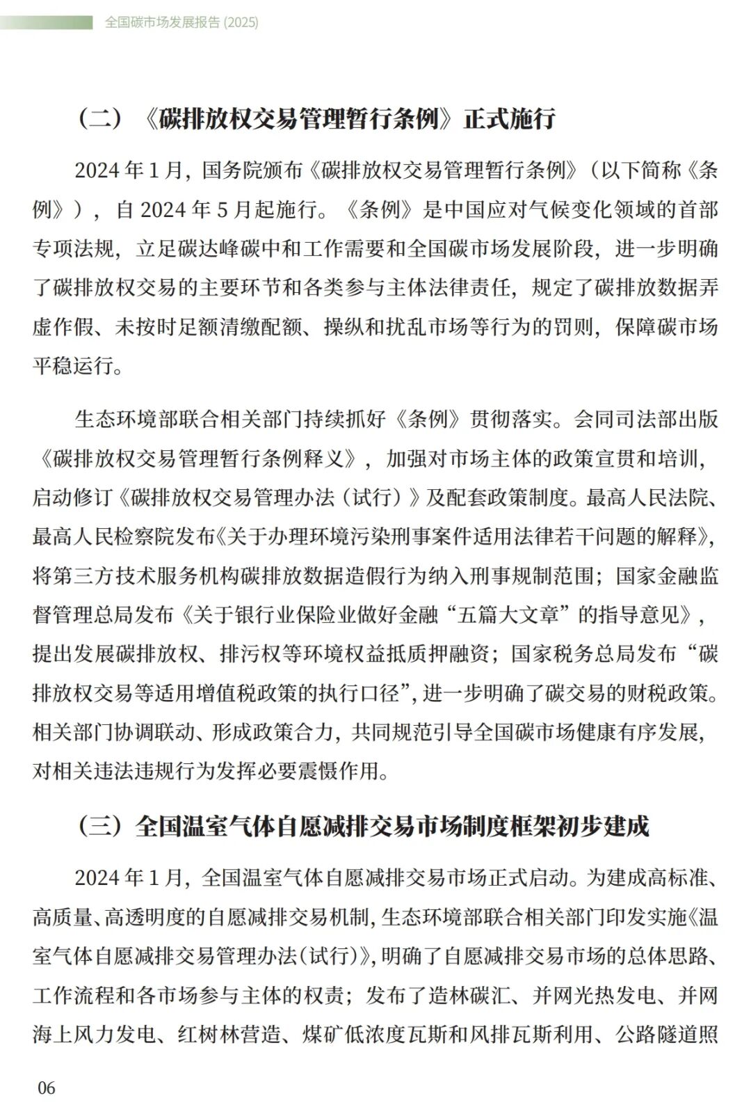 《全国碳市场发展报告(2025)》系统总结了全国碳排放权交易市场和全国温室气体自愿减排交易市场的最新建设进展,全方位展示了市场建设运行成效,展望了全国碳市场未来发展方向,是继2024年《全国碳市场发展报告(2024)》之后,生态环境部发布的全国碳市场最新进展情况报告。