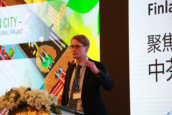 图:节能减排、供热供冷技术等领域芬兰企业代表公司介绍其生产工艺及技术产品
