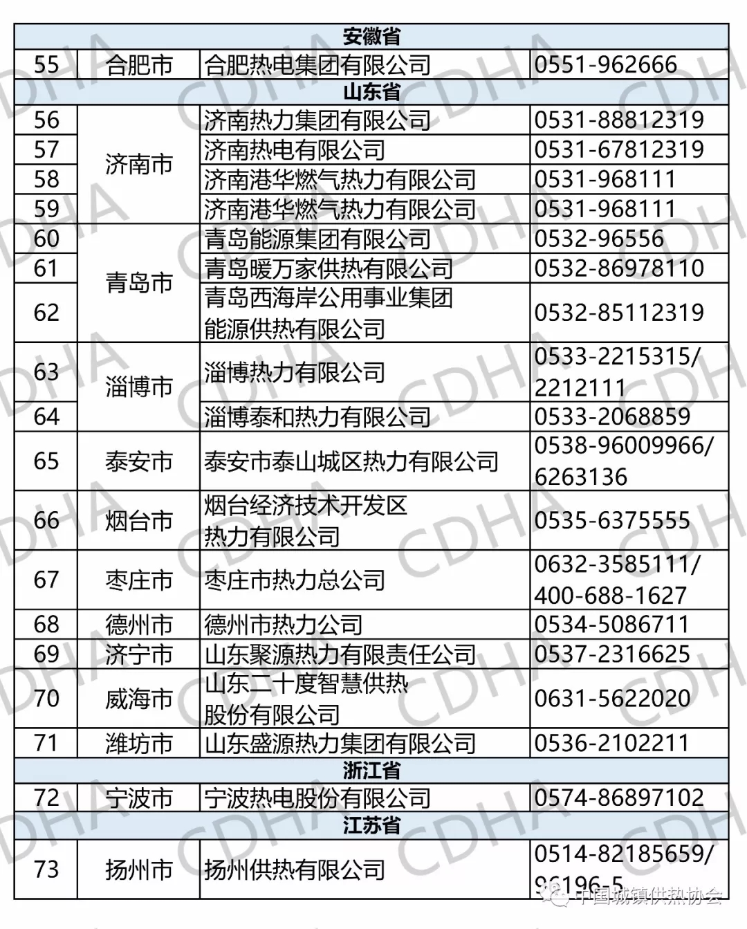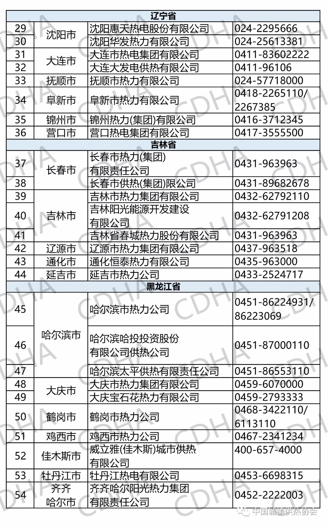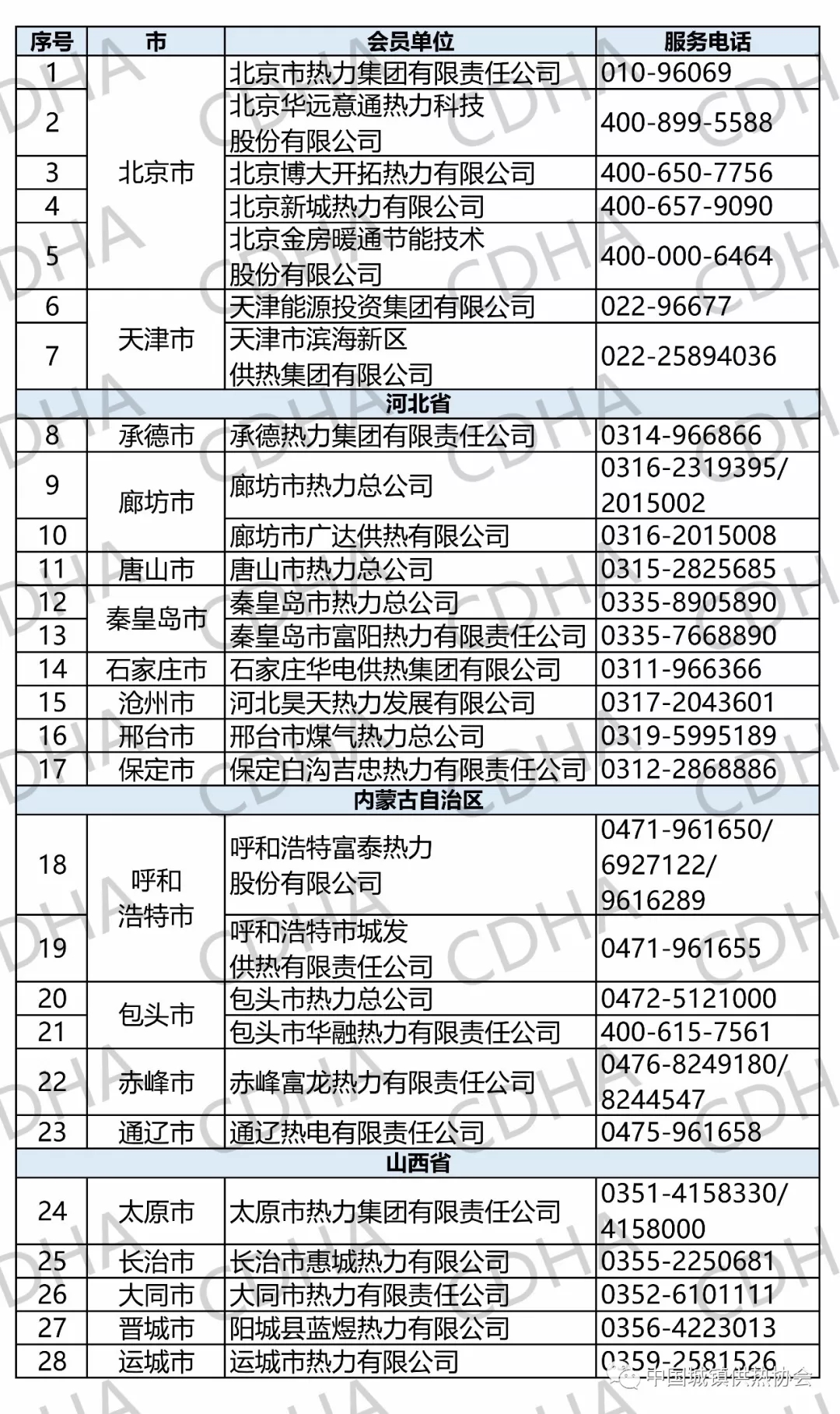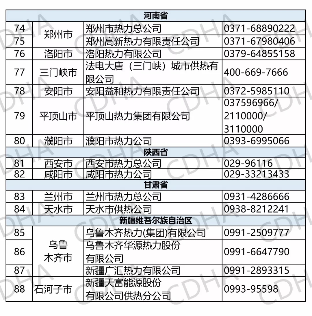 主要省市会员单位供热服务电话