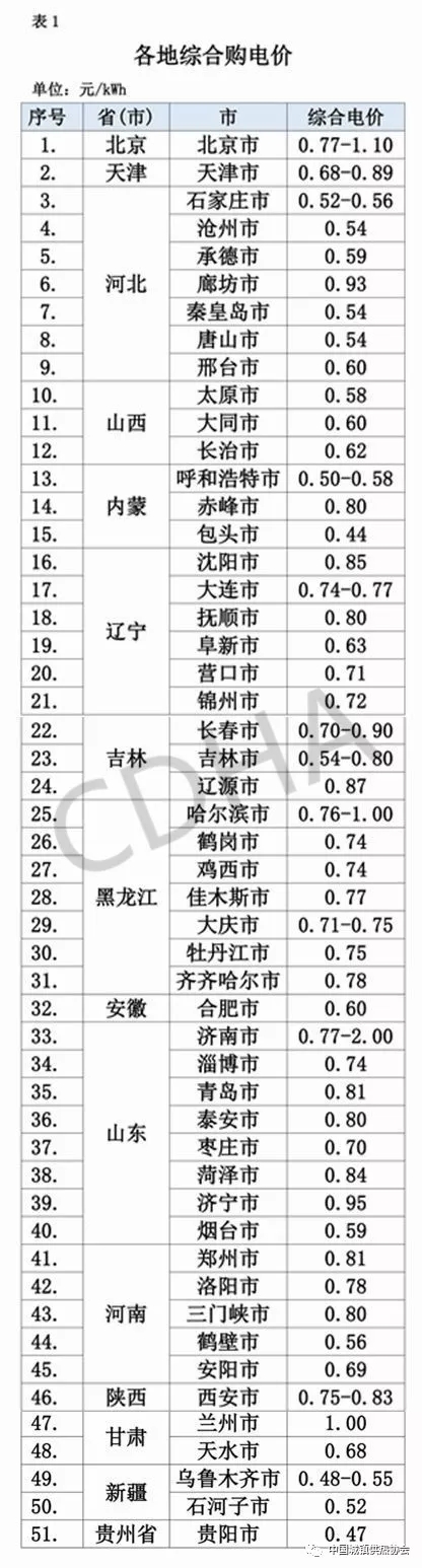 根据协会2018年全国部分供热企业统计工作结果,现摘取各地2018-2019供暖期各地供热企业综合购电、购气、购水价格,予以公布。