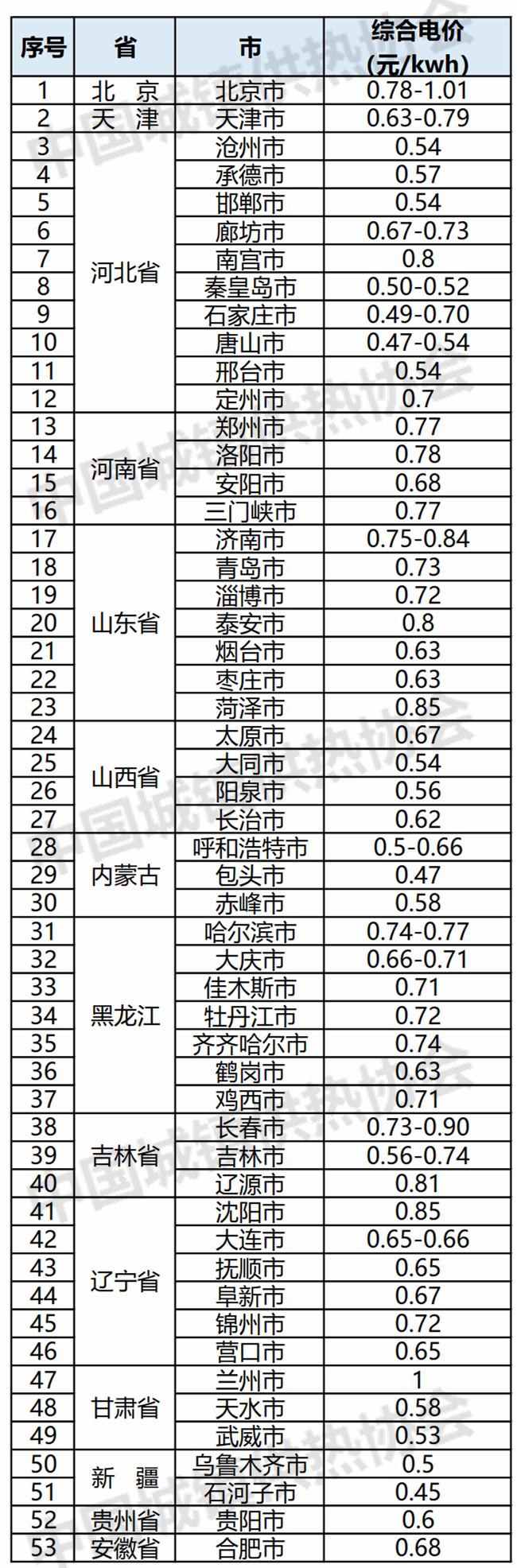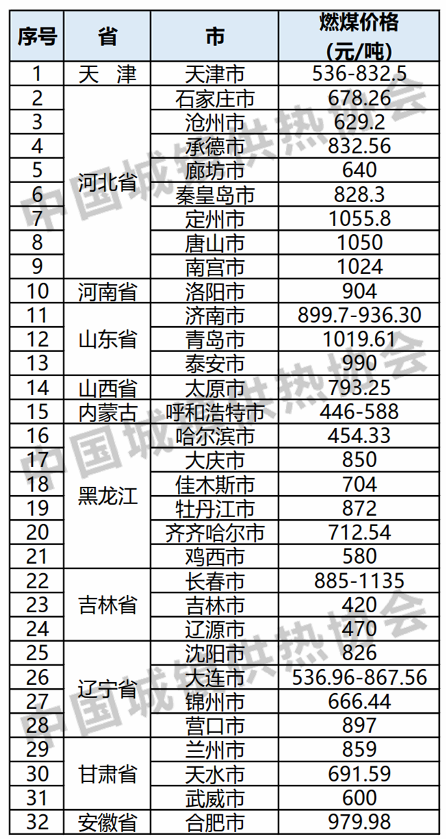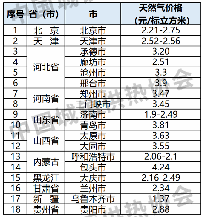 中国城镇供热协会根据2019年全国部分供热企业统计工作结果,现摘取各地2019-2020供暖期各地供热企业综合购气、煤、水、电价格,予以公布。
