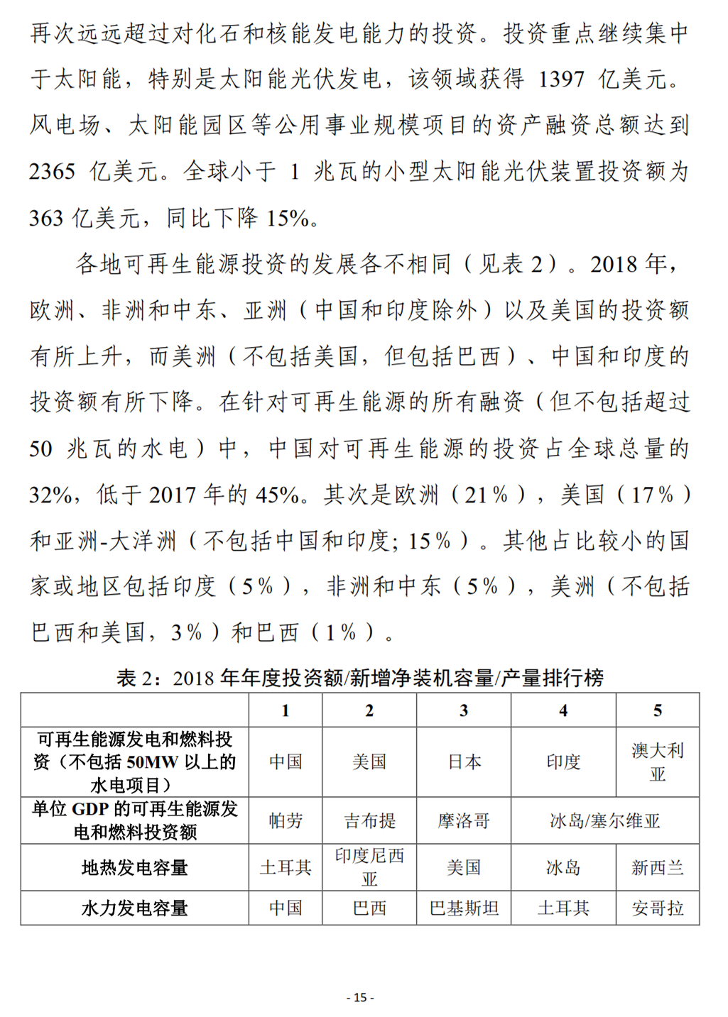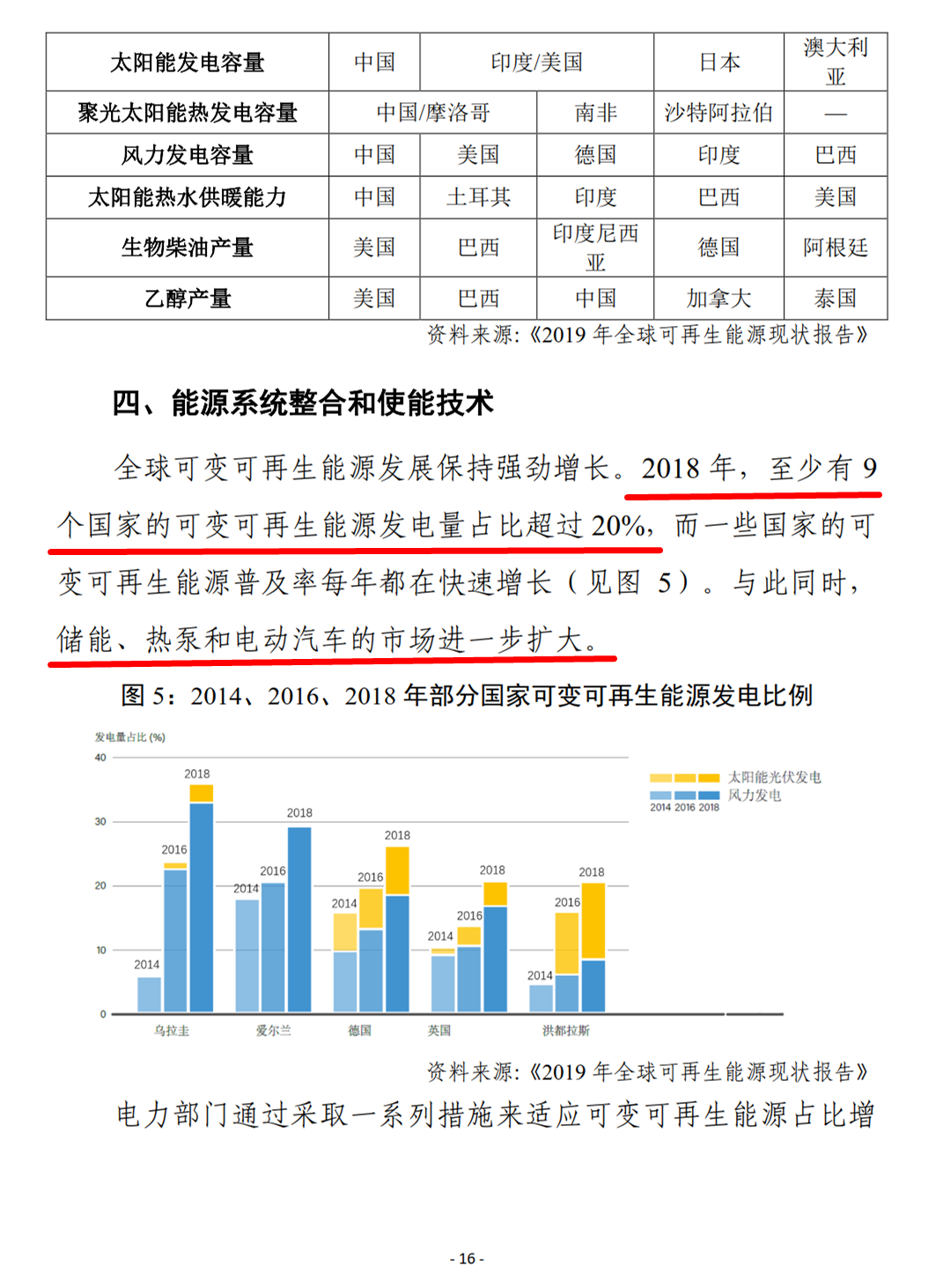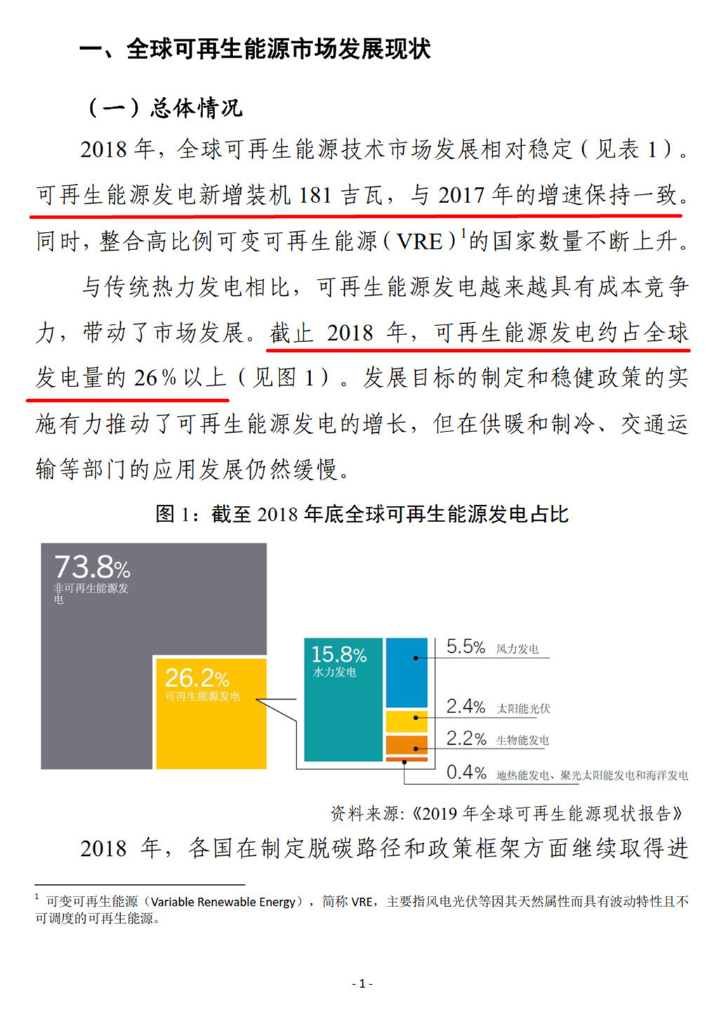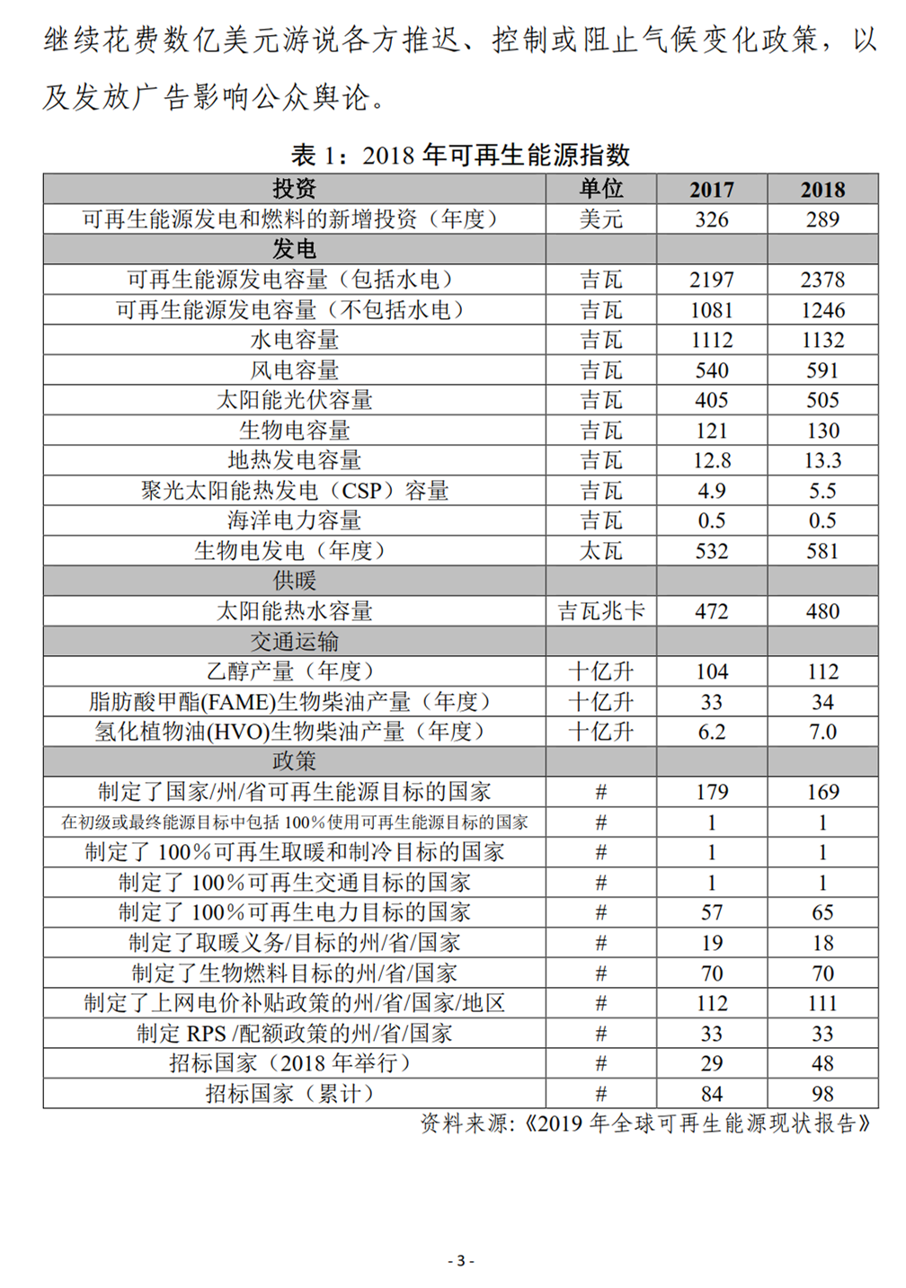 联合国再生能源咨询机构REN21 发布《2019年全球可再生能源现状报告》,这是自2005 年来该机构发布的第15 期年度报告,报告详细分析了 2018 年全球可再生能源发展现状、政策框架、投资趋势、能源系统整合和使能技术发展,以及能源效率等方面的情况。从中可以看出,可再生能源发电量占比不断提高,但在供暖和制冷、交通运输等部门的应用发展仍然缓慢。越来越多的国家开始制定支持可再生能源发展的政策和目标,但全球投资尤其是发展中国家的投资有放缓趋势。