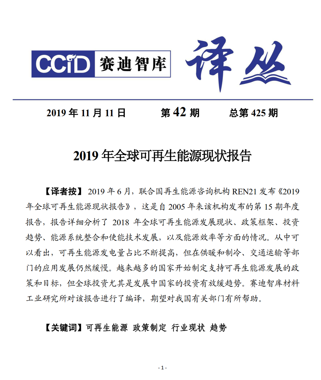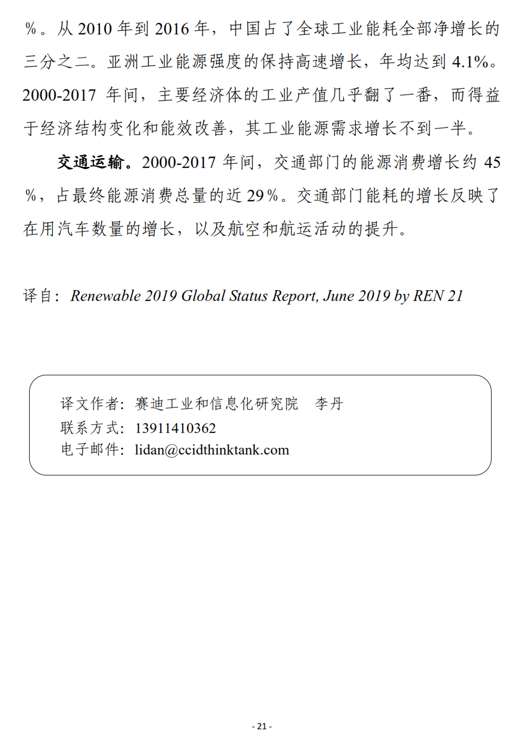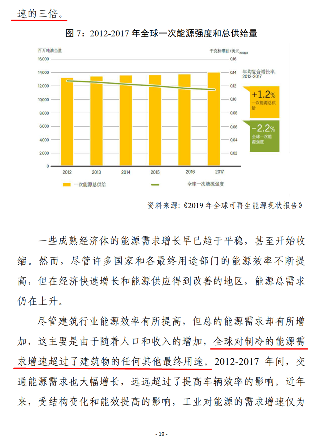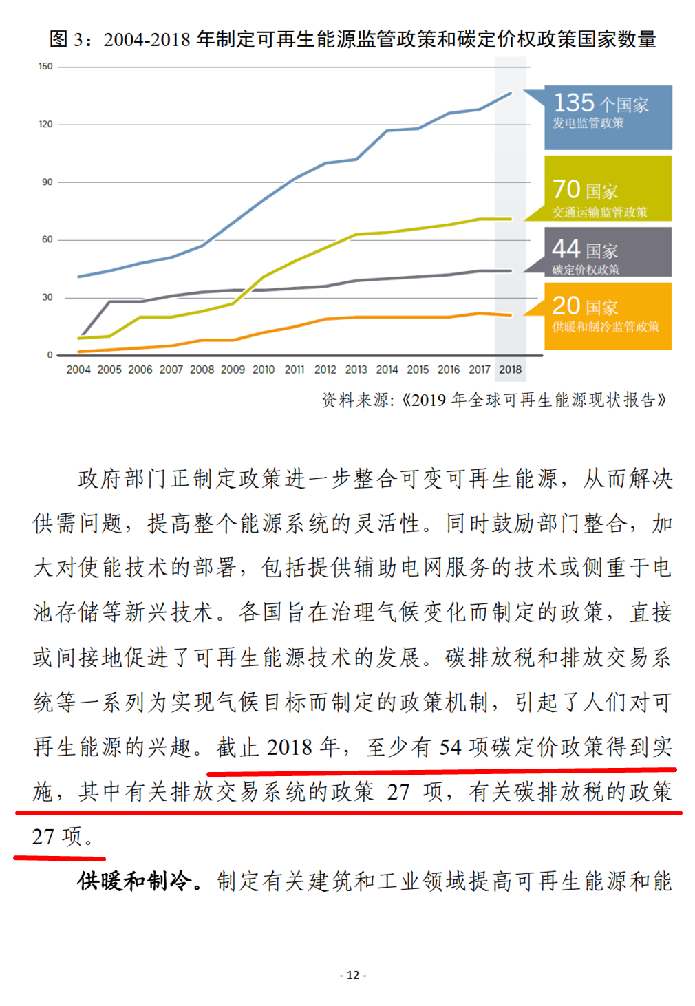 联合国再生能源咨询机构REN21 发布《2019年全球可再生能源现状报告》,这是自2005 年来该机构发布的第15 期年度报告,报告详细分析了 2018 年全球可再生能源发展现状、政策框架、投资趋势、能源系统整合和使能技术发展,以及能源效率等方面的情况。从中可以看出,可再生能源发电量占比不断提高,但在供暖和制冷、交通运输等部门的应用发展仍然缓慢。越来越多的国家开始制定支持可再生能源发展的政策和目标,但全球投资尤其是发展中国家的投资有放缓趋势。