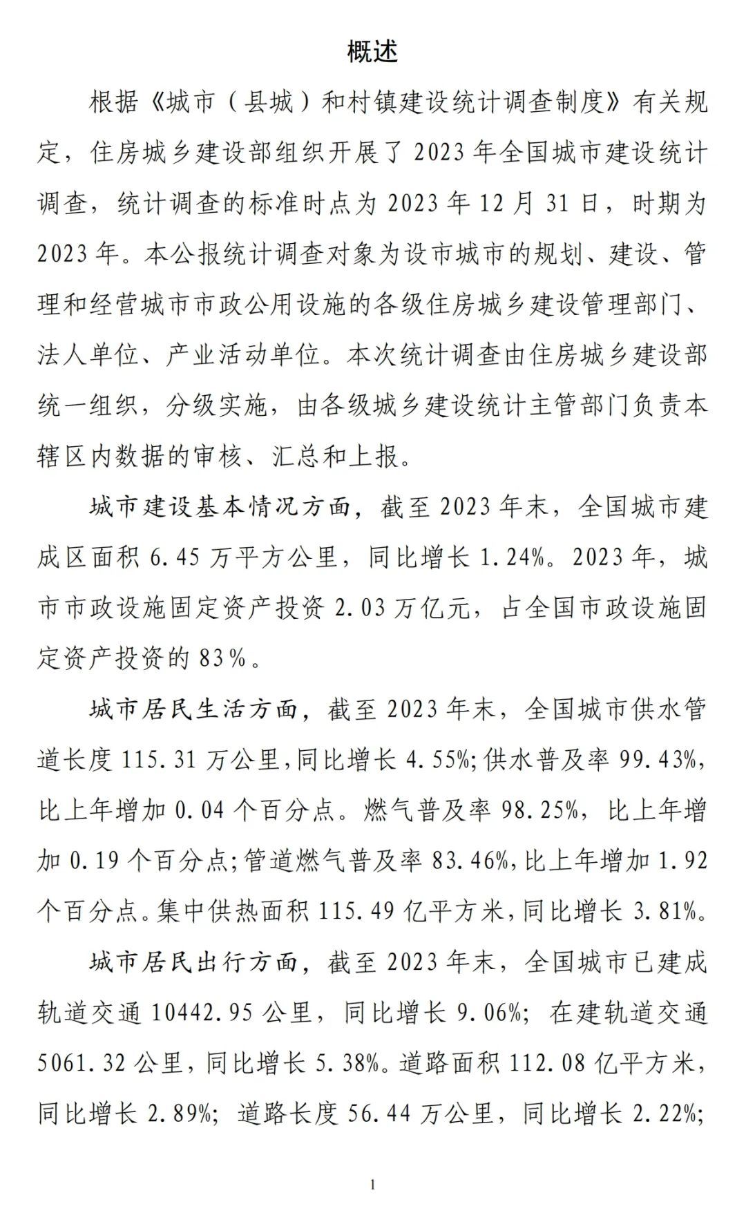 10月29日,国家住房和城乡建设部发布《2023中国城市建设状况公报》。