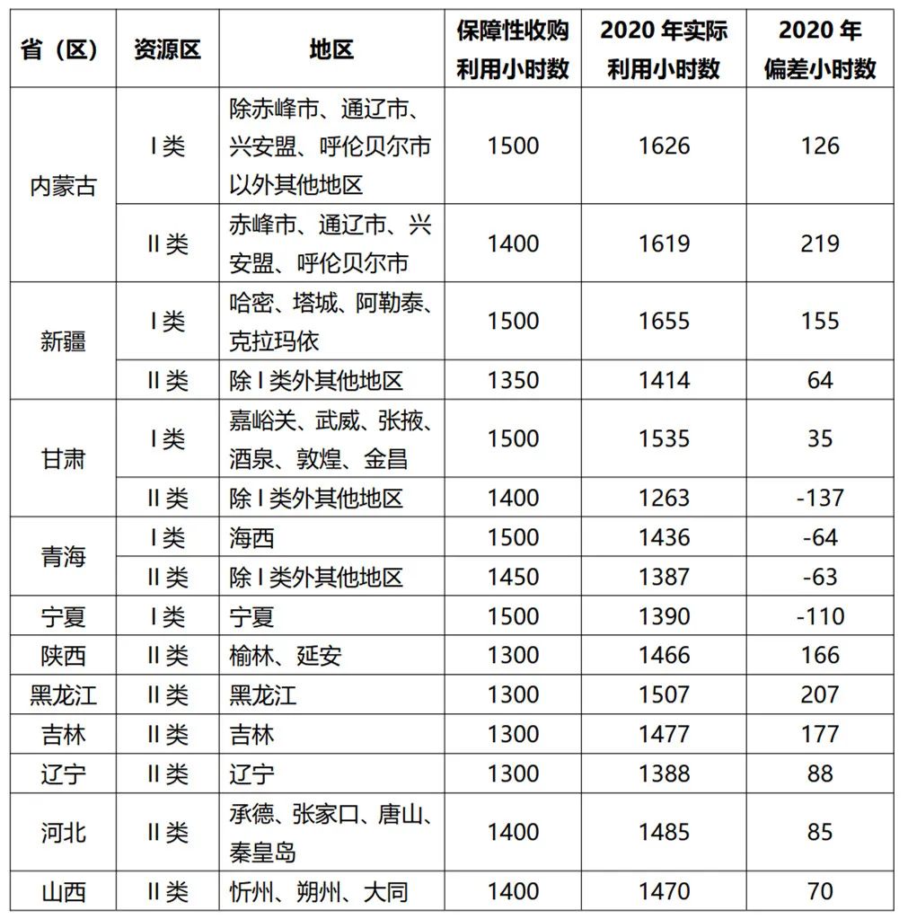 2020年,在规定风电最低保障收购年利用小时数的地区中,甘肃III类资源区、宁夏III类资源区和山西IV类资源区未达国家最低保障收购年利用小时数要求,实际利用小时数比最低保障收购年利用小时数分别低162小时、197小时和150小时。2020年,在规定光伏发电最低保障收购年利用小时数的地区中,甘肃II类地区、青海I类和II类地区以及宁夏I类地区等4个地区未达到光伏发电最低保障收购年利用小时数要求,其中,甘肃II类地区比最低保障收购年利用小时数地区低137小时;青海I类和II类地区比最低保障收购年利用小时数分别低64小时和63小时;宁夏I类地区比最低保障收购年利用小时数低110小时。