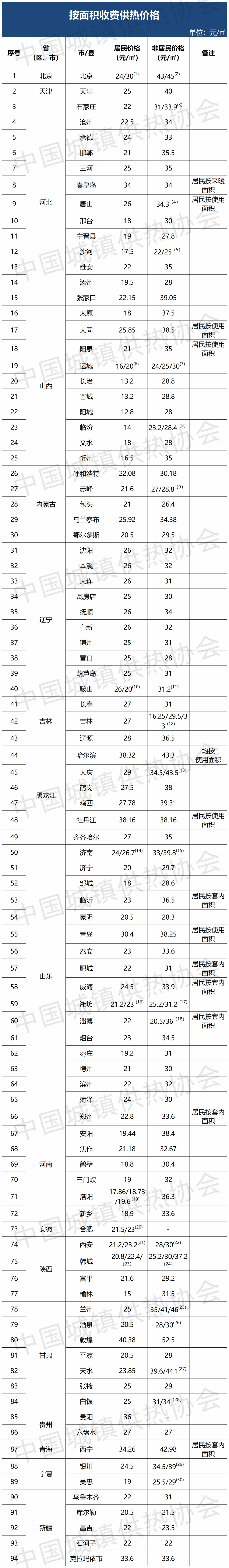 (22)西安市非居民供热价格:物业代管28元/㎡,直管到户30元/㎡。