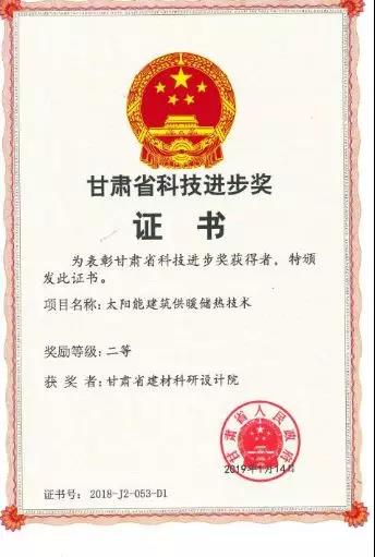 3.甘肃建材院:太阳能建筑供暖储热技术喜获甘肃省科技进步二等奖