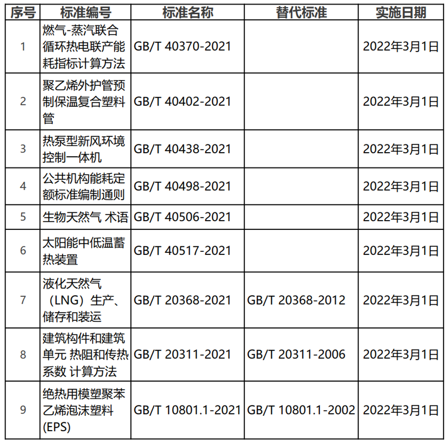 近日,国家市场监督管理总局(国家标准化管理委员会)批准《燃气-蒸汽联合循环热电联产能耗指标计算方法》等450项推荐性国家标准和4项国家标准修改单。与供热相关的标准列表如下: