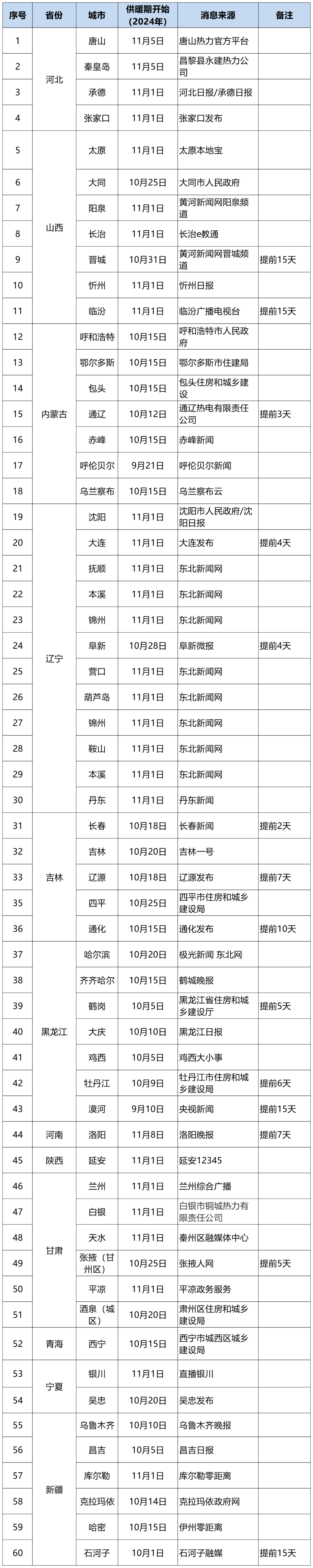 1.2024年度全国多个城市正式开始供暖
