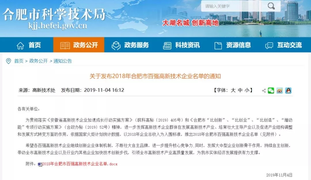 近日,2018年合肥市百强高新技术企业名单正式公布,合肥热电荣列榜单,这是合肥热电继2018年通过“国家高新技术企业认证”之后获得的又一殊荣,且合肥市城市公益公用类企业仅此一家,这标志着合肥热电在技术创新方面的工作成果得到了上级部门的高度认可。