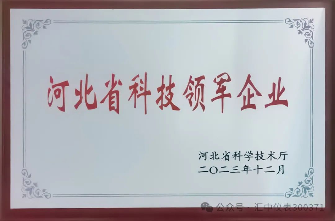 河北省科技厅公布了2023年度认定的河北省科技领军企业名单,汇中仪表股份有限公司脱颖而出,榜上有名。