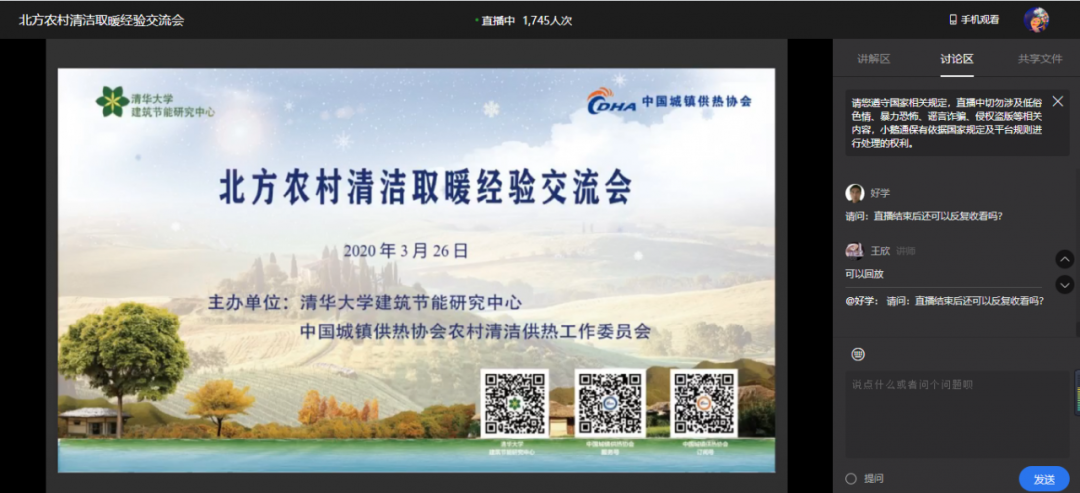 3月26日,由清华大学建筑节能研究中心与协会农村清洁供热工作委员会共同主办的北方农村清洁取暖经验交流会以远程报告和网络直播的方式召开。