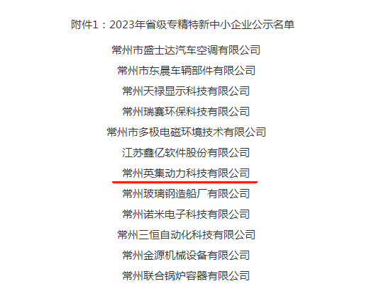 12月14日,常州市工信局公示了《江苏省2023年专精特新中小企业名单》,英集动力成功入选。