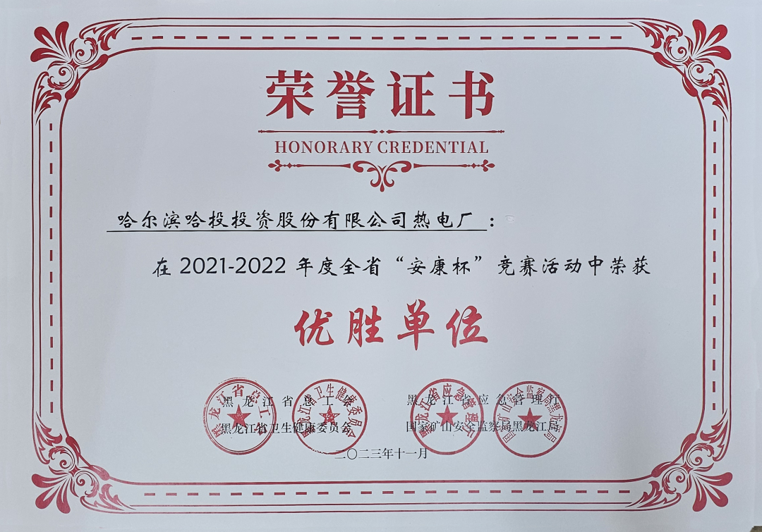 1.哈投集团:哈投热电厂荣获2021-2022年度全省“安康杯”优胜企业