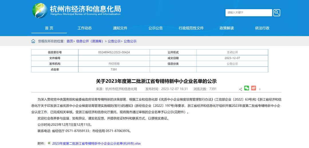 浙江省经济和信息化厅组织公布2023年度第二批省专精特新中小企业名单。云谷科技成功入选。