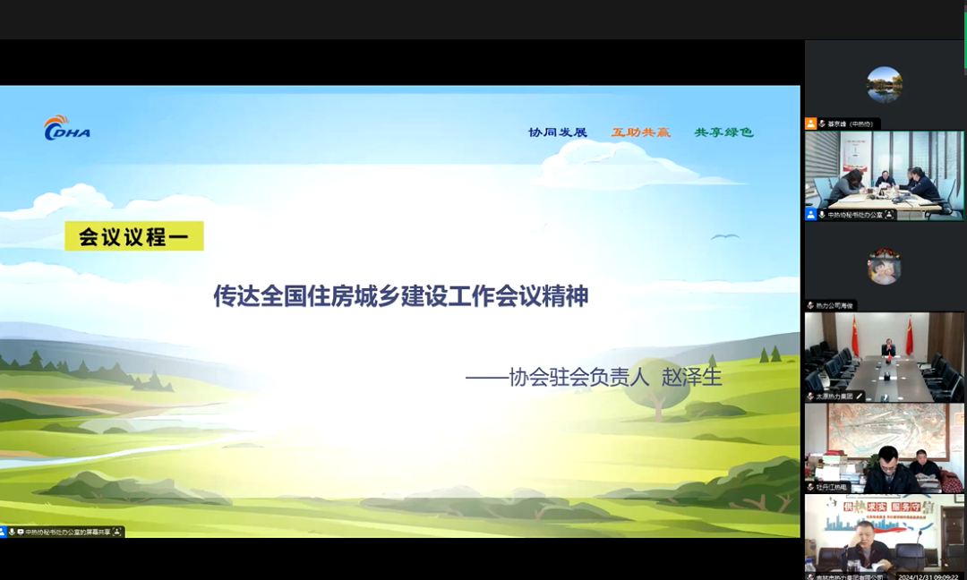 12月31日,中国城镇供热协会召开线上七届十一次理事会暨七届十七次常务理事会。会议传达了全国住房城乡建设工作会议精神和推进城市基础设施生命线安全工程现场会会议精神,介绍了协会2024年以来工作及2025年工作计划及预算情况,并对协会标准化专业委员会相关文件进行审议评估。协会相关领导及常务理事单位、理事单位代表共140余人参加本次会议。