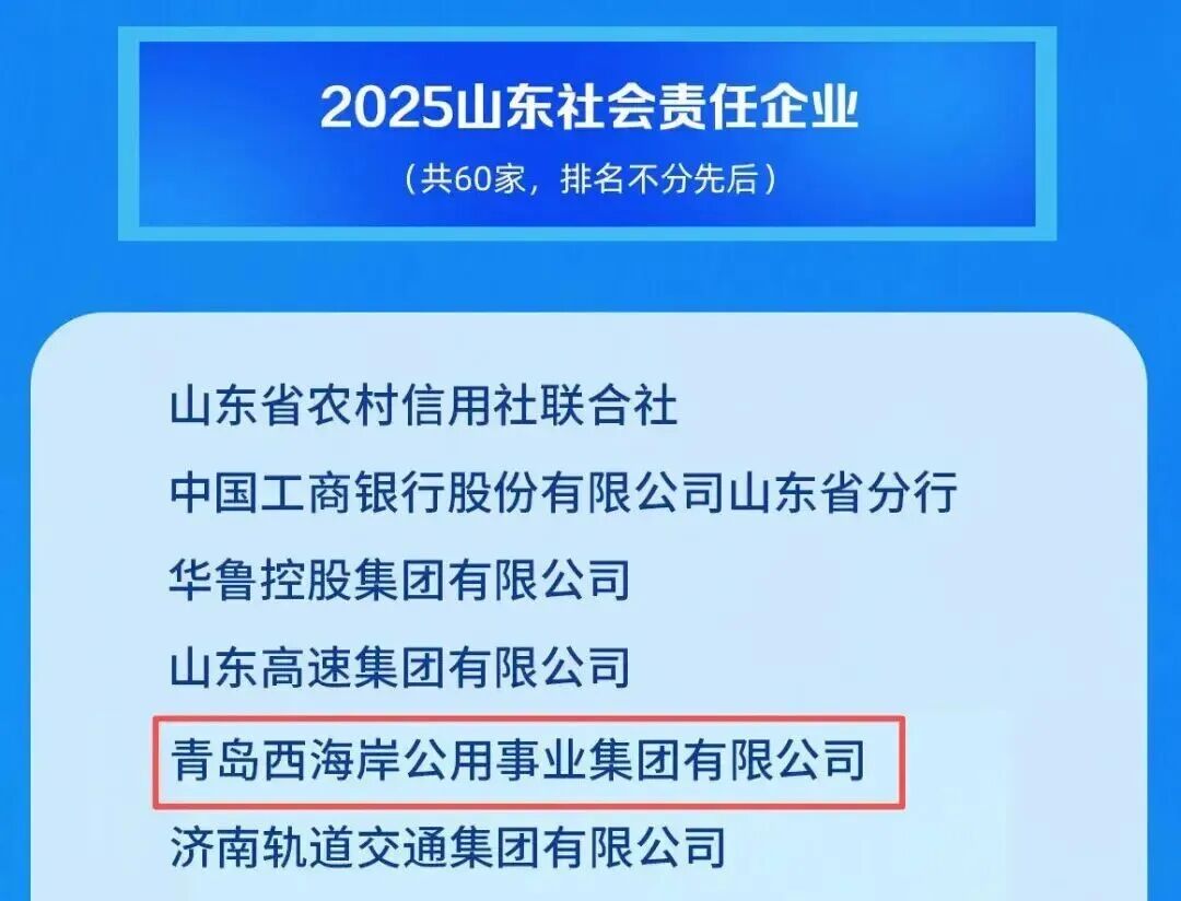 3.青岛西海岸公用集团:获评2025山东社会责任企业