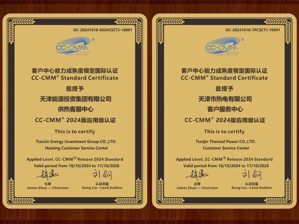 天津能源集团供热客服中心和分中心(热电公司客服中心)正式通过客户中心能力成熟度模型(CC-CMM)国际标准认证。这是全国供热行业在这一领域的首次突破,也是天津能源集团扎实推进国企改革深化提升行动、深入开展“民呼我为、擦亮窗口”行动的重要成果。