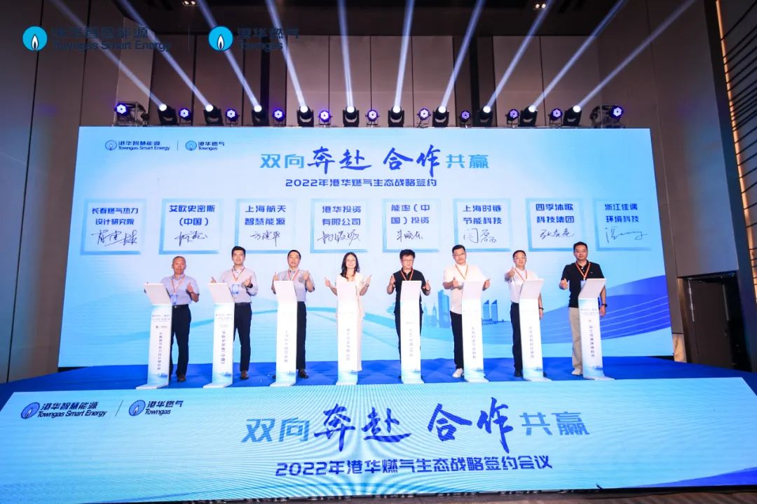 2022年8月3日上午,以“双向奔赴,合作共赢”为主题的“2022年港华燃气生态战略签约会议”在山东青岛举办。港华燃气邀请上海航天、能率(中国)、A.O.史密斯等多家行业优秀伙伴参会并签订战略合作协议。会上发布的港华燃气热能服务解决方案,以「燃气+」智慧、低碳、多元热能技术为核心,实现“源网荷储控”一体化和多能互补集成优化,为城镇、工业园区、商业、学校、医院、居民客户提供采暖、蒸汽、热水、制冷等综合能源供应服务,业务范围涵盖区域供热、工商供能、民用采暖等能源基础设施的投资、建设及运营,推动能源产业与社会经济绿色、低碳发展。