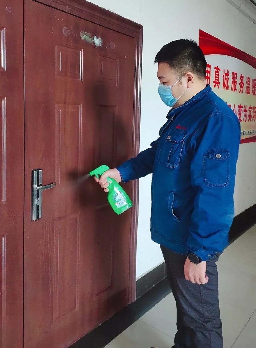 大年初一,还没到值班排班日期,王旭初就驱车赶到单位。给坚守在工作岗位的同事们拜年的同时,再三叮嘱大家一定要做好消毒工作,尤其是到用户家上门维修时要带好口罩。随后他和值班同事一起,用消毒液给办公楼的每个角落都做了细致的消毒。