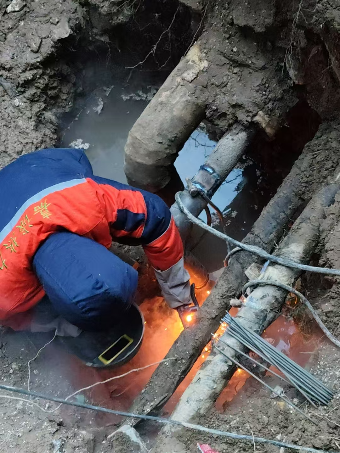 2024年12月27日,正值严寒。清晨6点,班组接到紧急通知:所辖一小区供热主管网因老化突发爆裂,导致2栋楼200余户居民家中停暖。班长张世军立即带领队员赶赴现场。顶着清晨的刺骨寒风跳入作业坑,为缩短抢修时间,队员们轮番操作电焊设备,在刺骨寒风中连续作业5小时。上午11点,管道修复完成,居民家中暖气逐渐恢复。一位老人握着维修工冻得通红的手连声道谢:“这么冷的天,你们真是拼命啊!谢谢你们!”