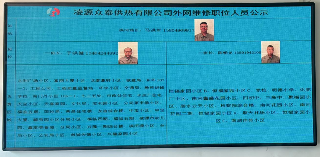 为确保服务公正透明,生产指挥部实行人员信息公开制度,全面公示所有维修人员的详尽资料,包括基本信息、专业技术等级以及服务承诺等,以便接受全社会监督,并便于用户及时联系解决各类诉求。此举不仅显著提升了服务的规范化和标准化水平,同时也有效推动了维修人员职业技能和服务态度的持续优化,从而赢得了广大用户及社会各界的高度认可。