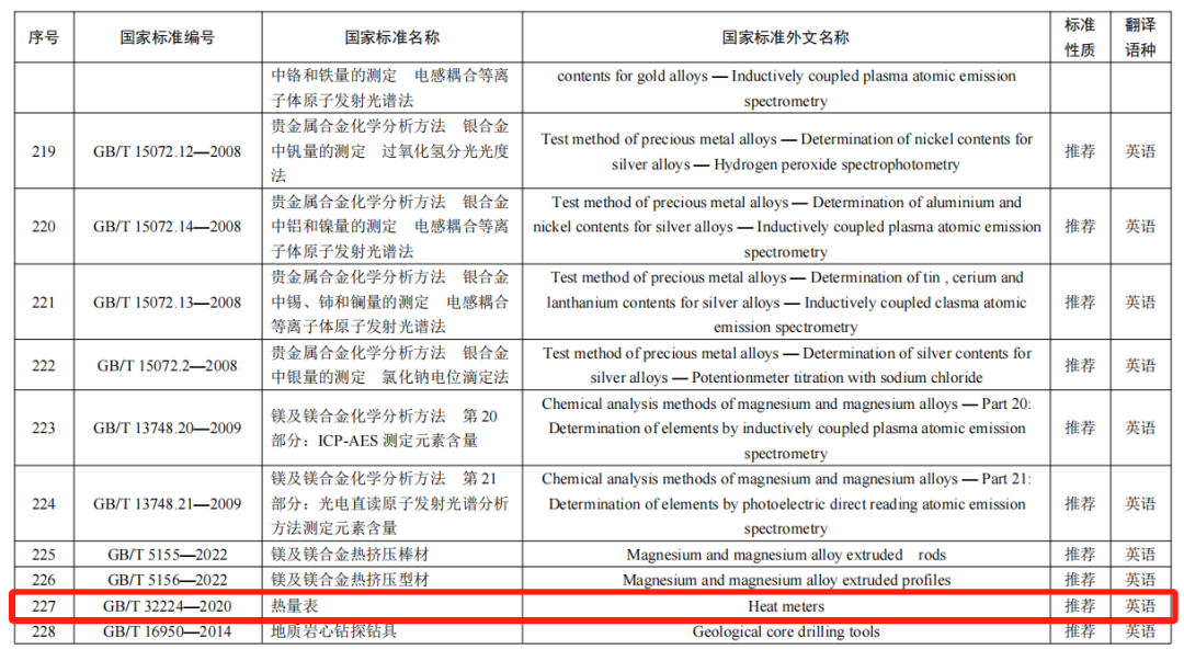 近日,国家市场监督管理总局(国家标准化管理委员会)批准发布一批国家标准外文版,其中包括外文版国家标准《热量表》GB/T 32224-2020(Heat meters)。这是城镇供热领域获批发布的第一项外文版国家标准,由中国城市建设研究院有限公司、久茂自动化(大连)有限公司、威海市天罡仪表股份有限公司、广州柏诚智能科技有限公司共同完成翻译。