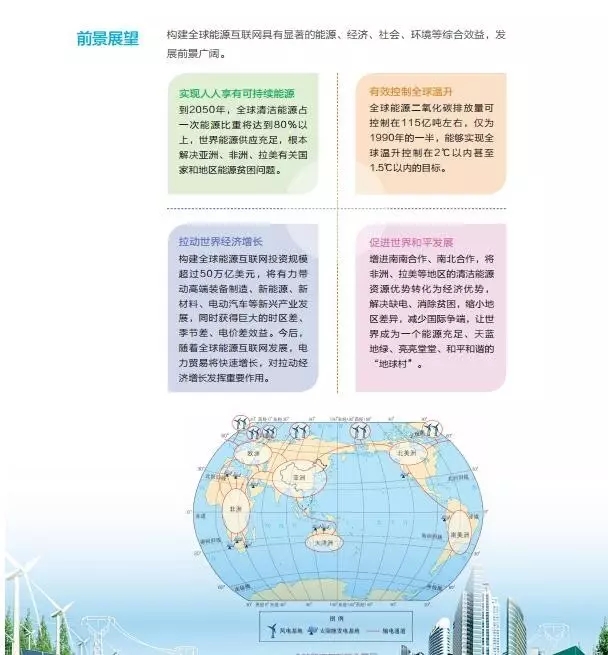 构建全球能源互联网能够拉动世界投资规模超过50万亿美元,将有力带动高端装备制造、新能源、新材料、电动汽车等新兴产业发展,同时获得巨大的时区差、季节差、电价差效益。