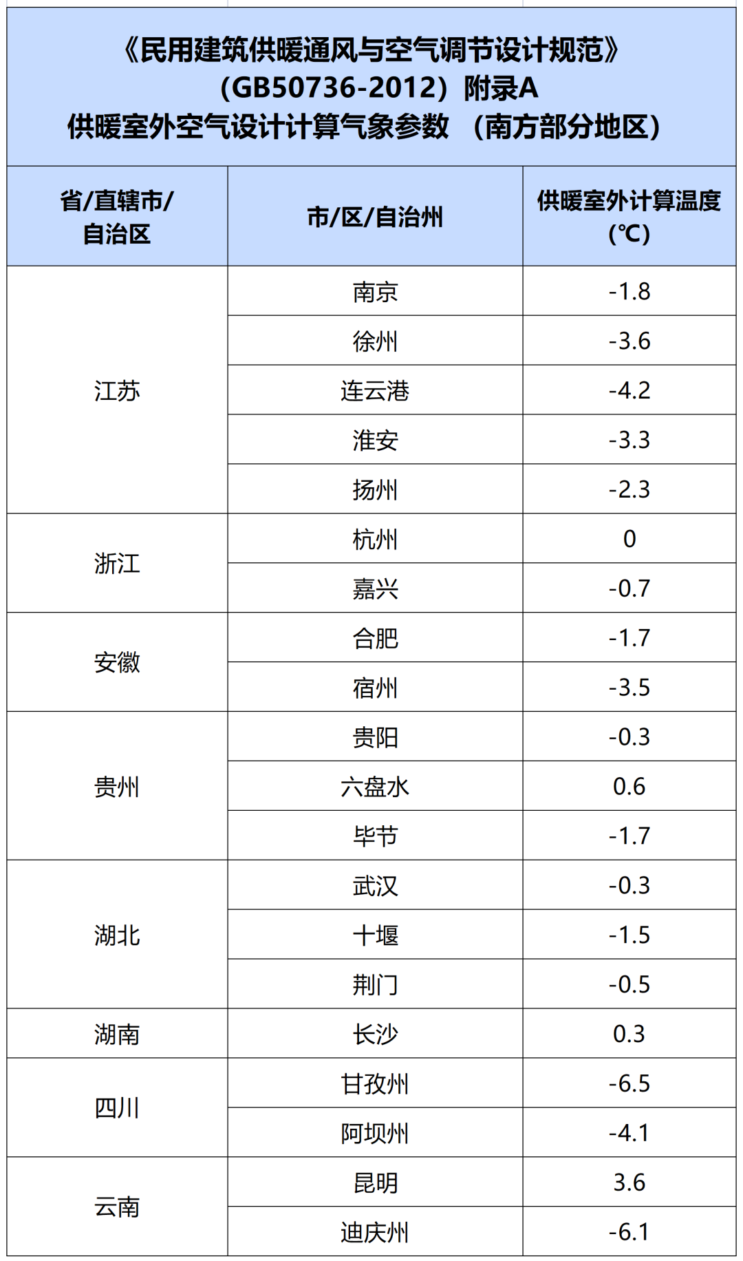 各地供暖室外设计温度值是多少?!一起来看GB50736中关于供暖室外计算温度的相关规定。