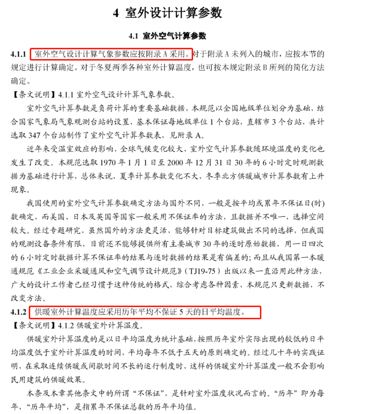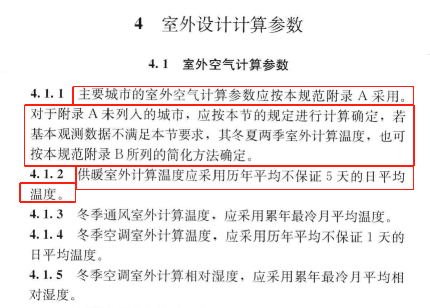 4.1.2 供暖室外计算温度应采用历年平均不保证5天的日平均温度