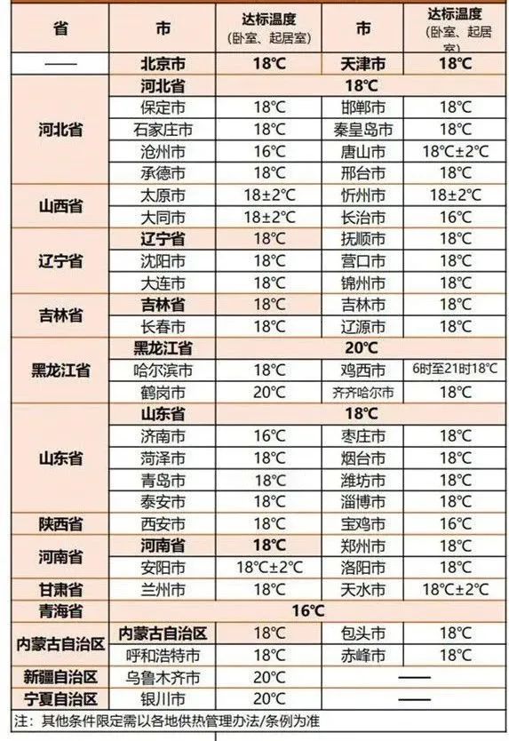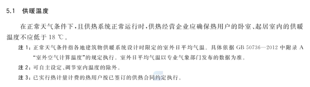 注1:正常天气条件指各地建筑物供暖系统设计时限定的室外日平均气温,具体依据GB50736-2012中附录A“室外空气计算温度”的规定执行。室外日平均气温以专业气象部门发布的数据为准。